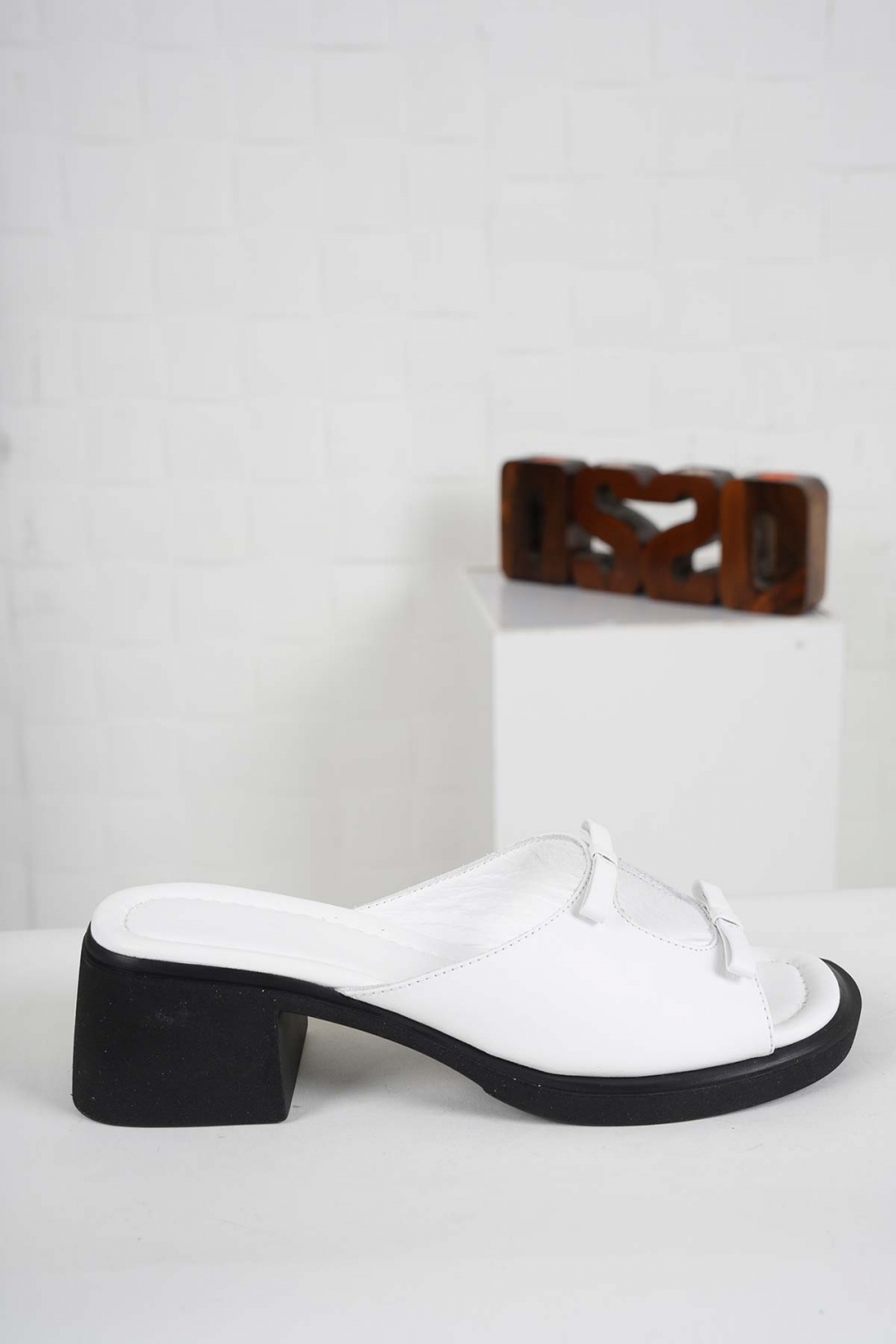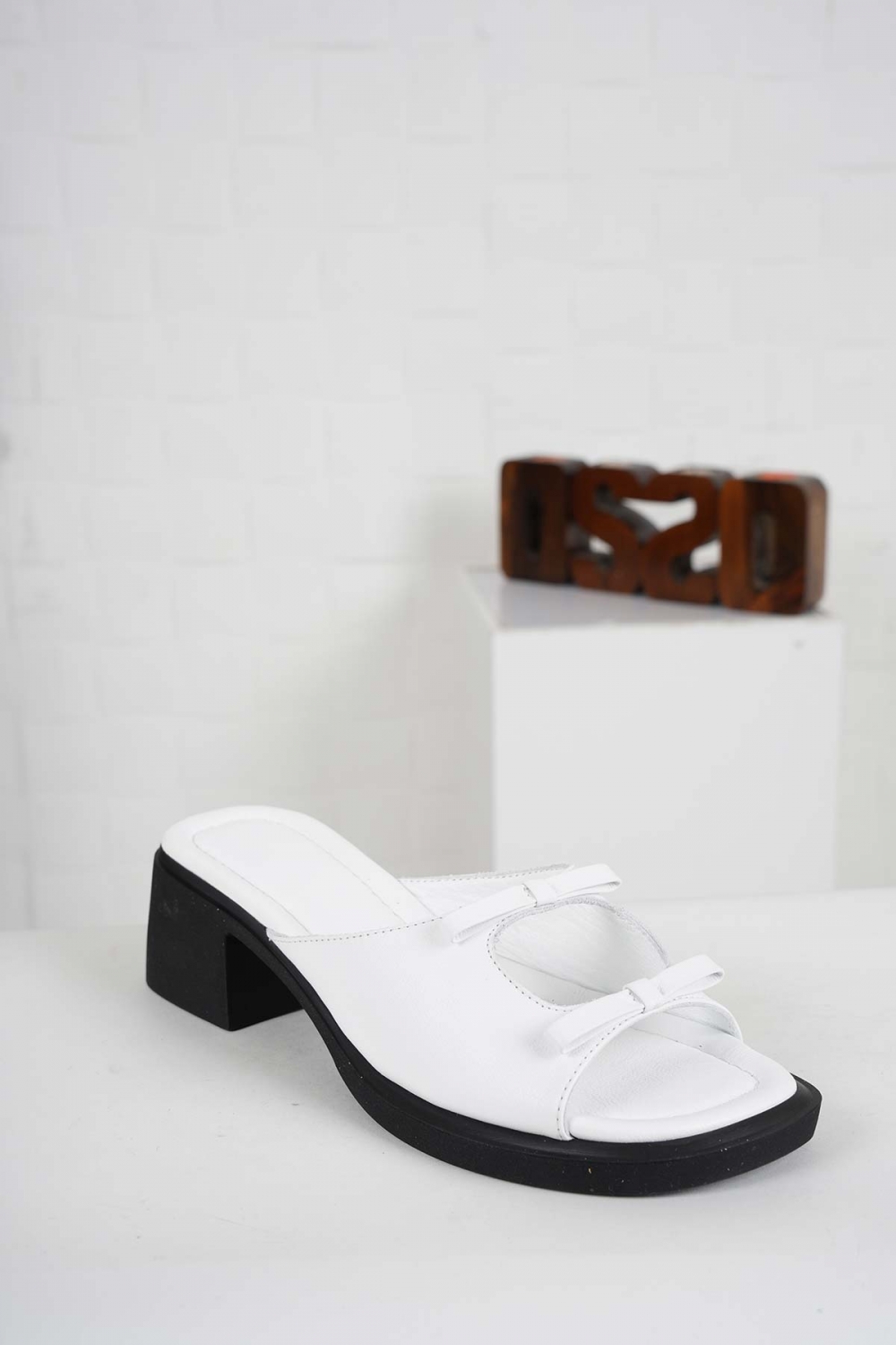 Hakiki Deri Beyaz Kadın Topuklu Terlik 241225604
