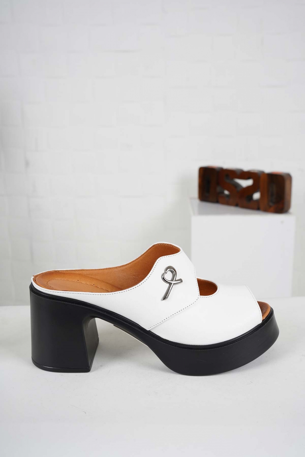 Hakiki Deri Beyaz Kadın Topuklu Terlik 241229602