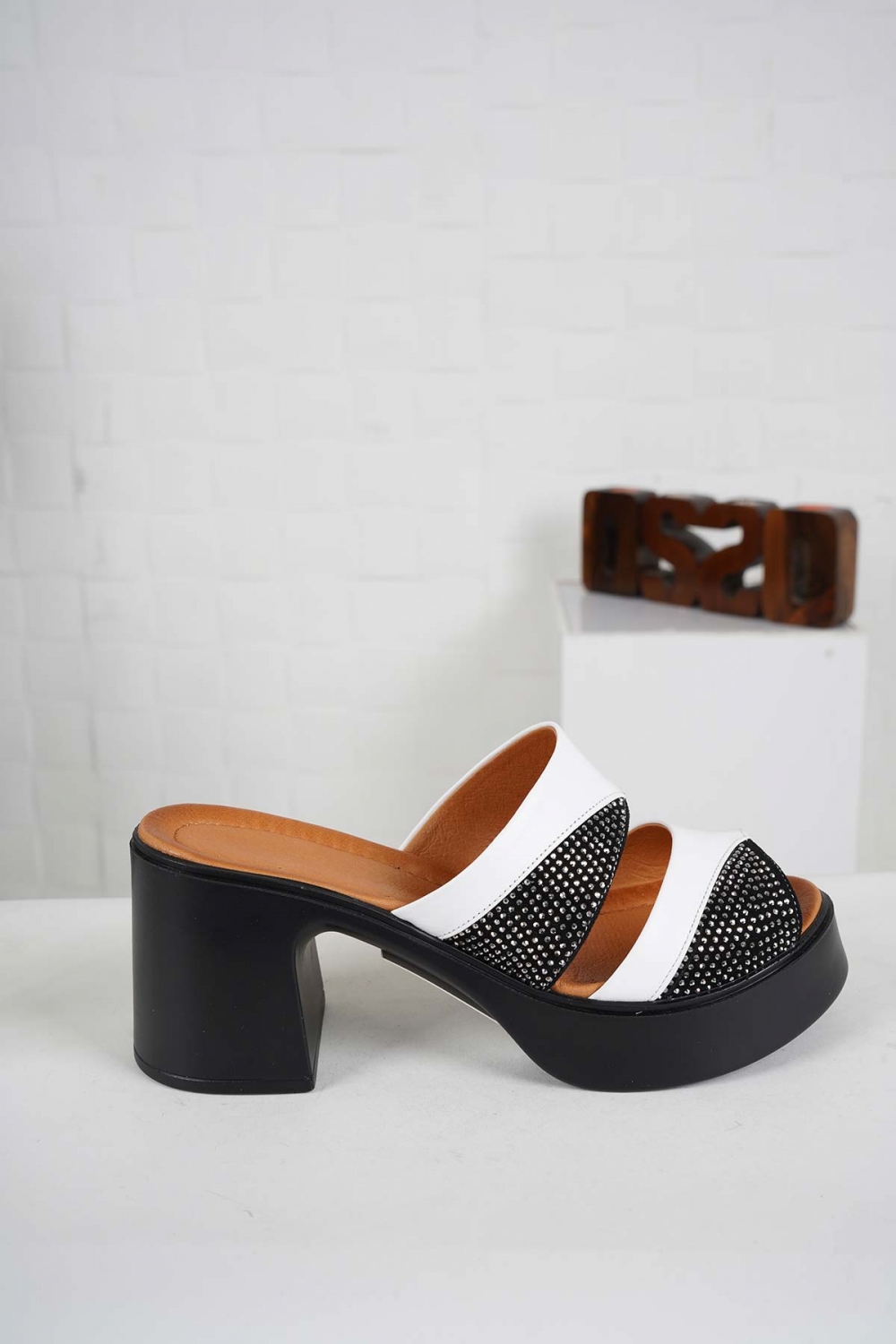 Hakiki Deri Beyaz Kadın Topuklu Terlik 241229606