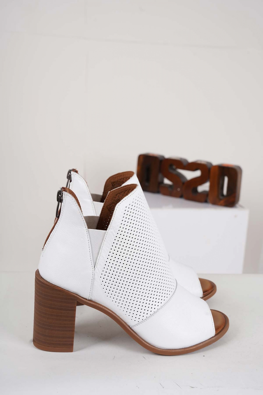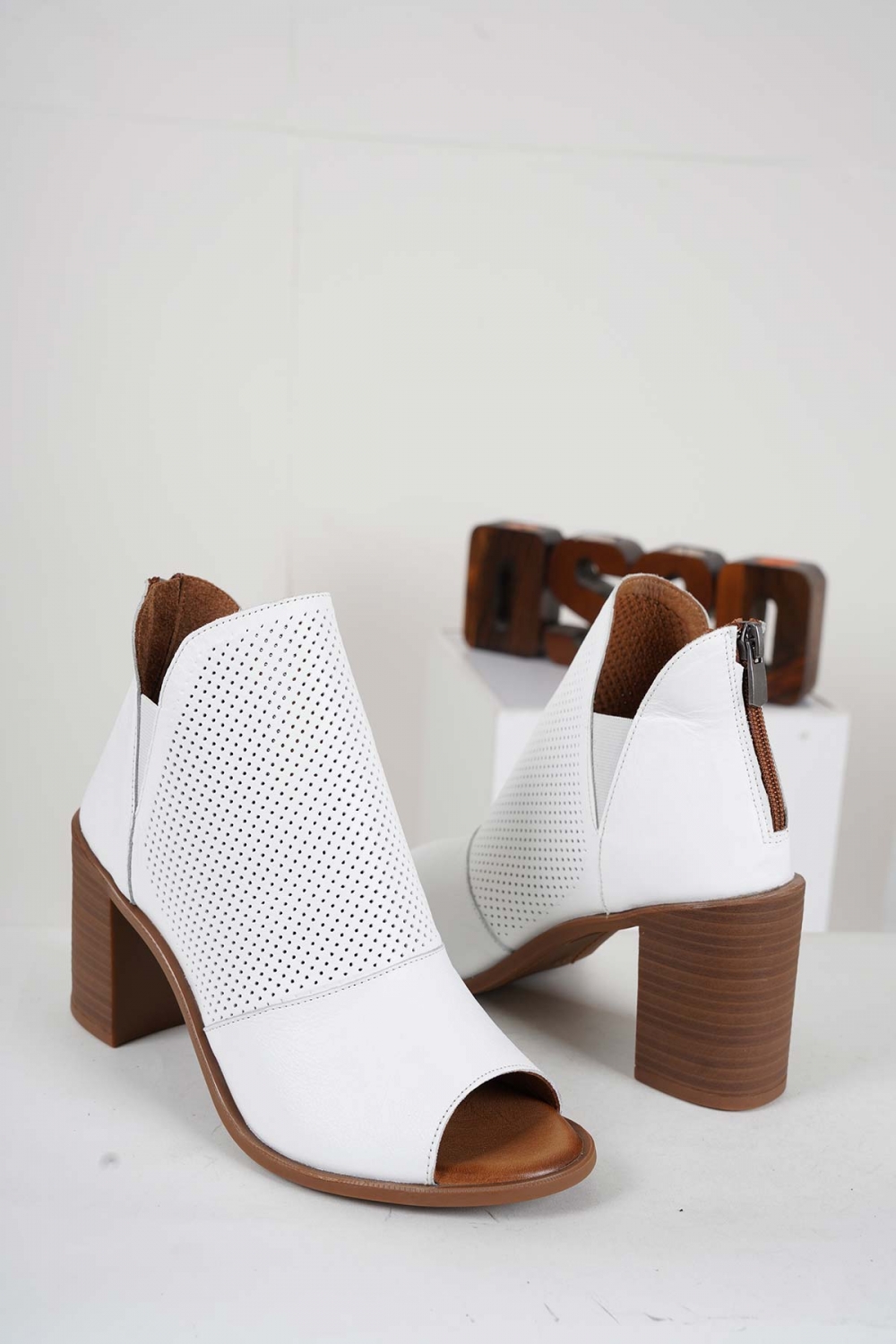Hakiki Deri Beyaz Kadın Yüksek Topuklu Sandalet 241126523