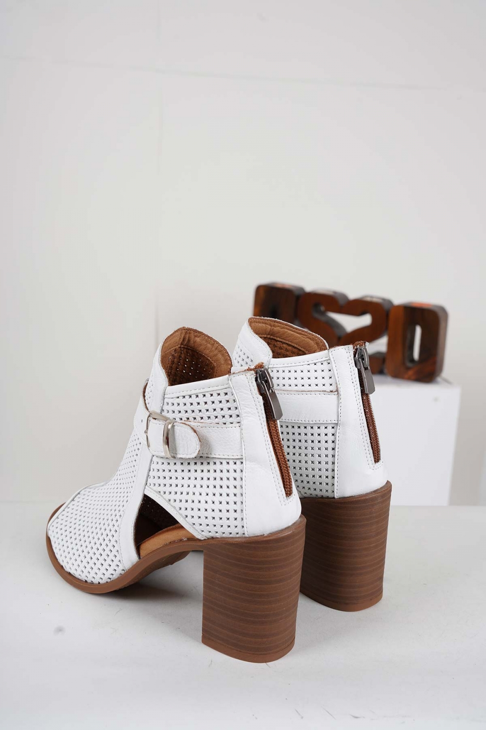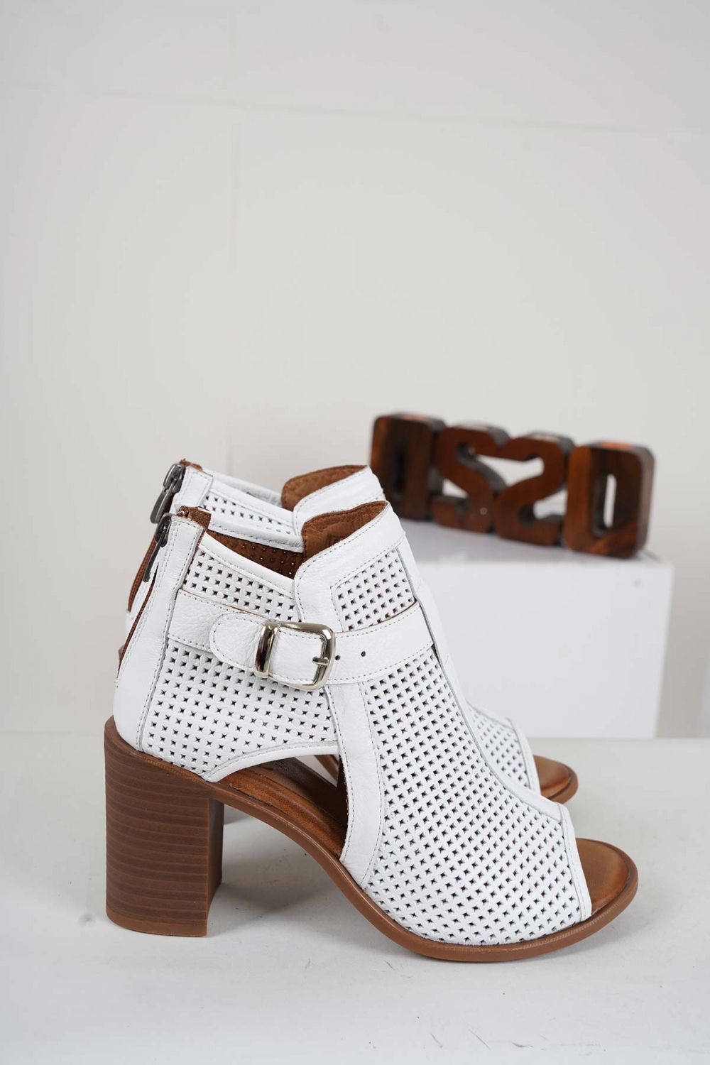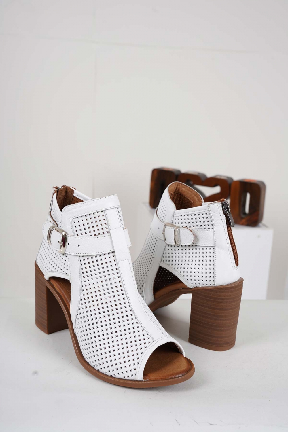 Hakiki Deri Beyaz Kadın Yüksek Topuklu Sandalet 241126525