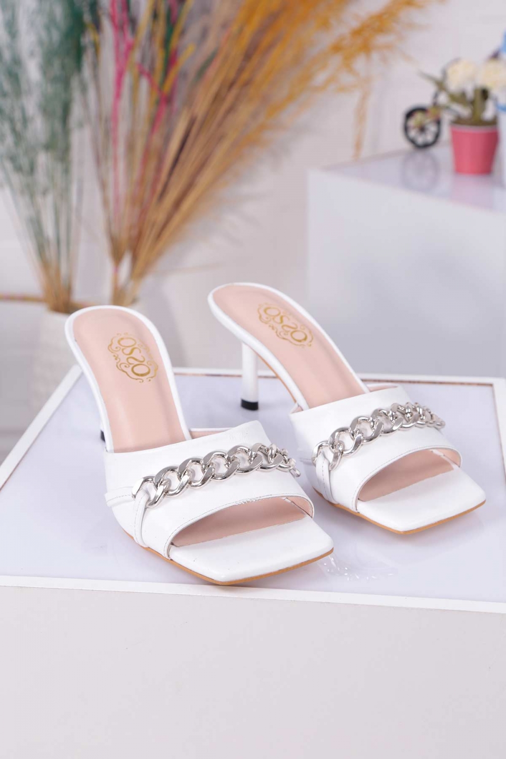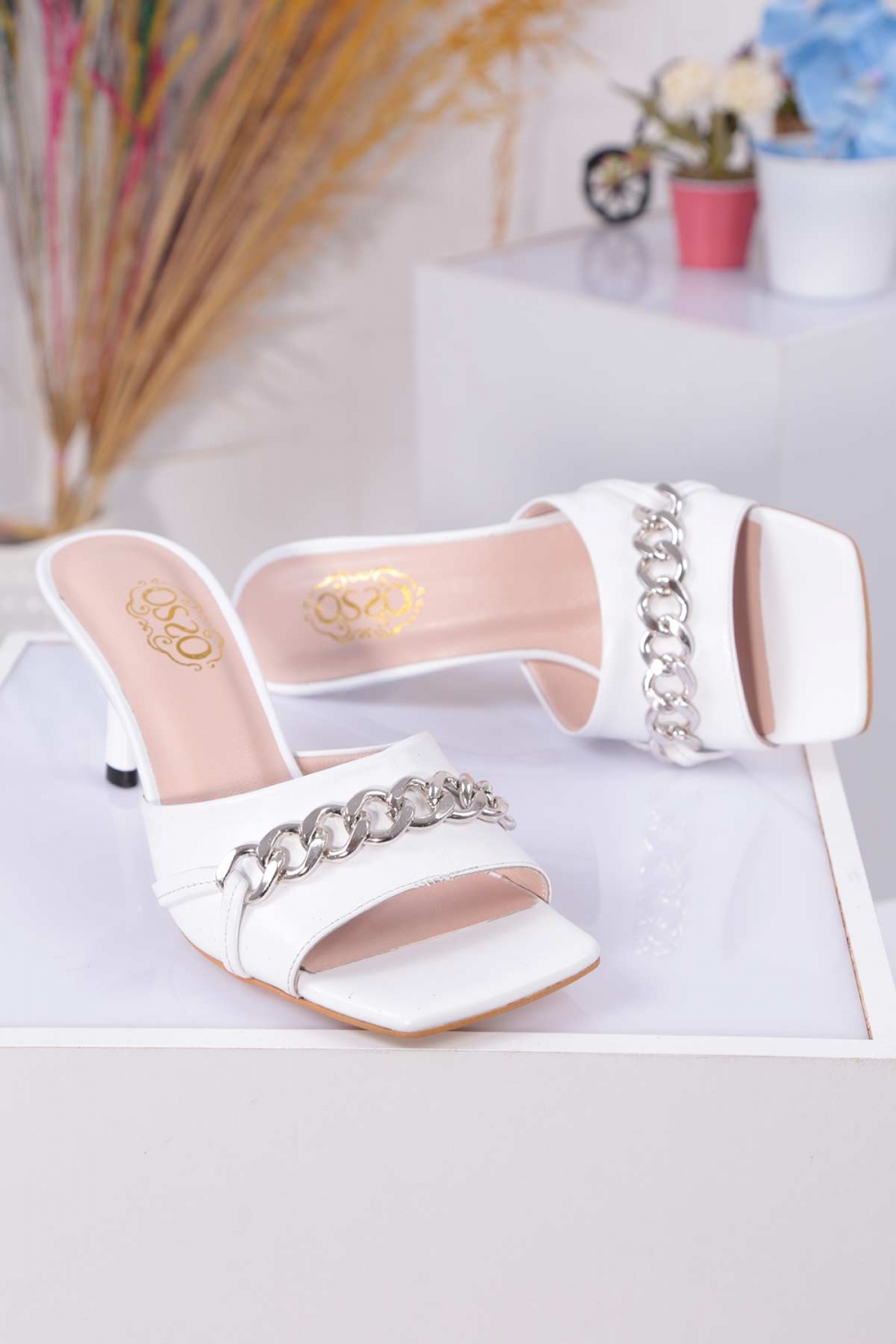 Hakiki Deri Beyaz Kadın Yüksek Topuklu Terlik 211127617