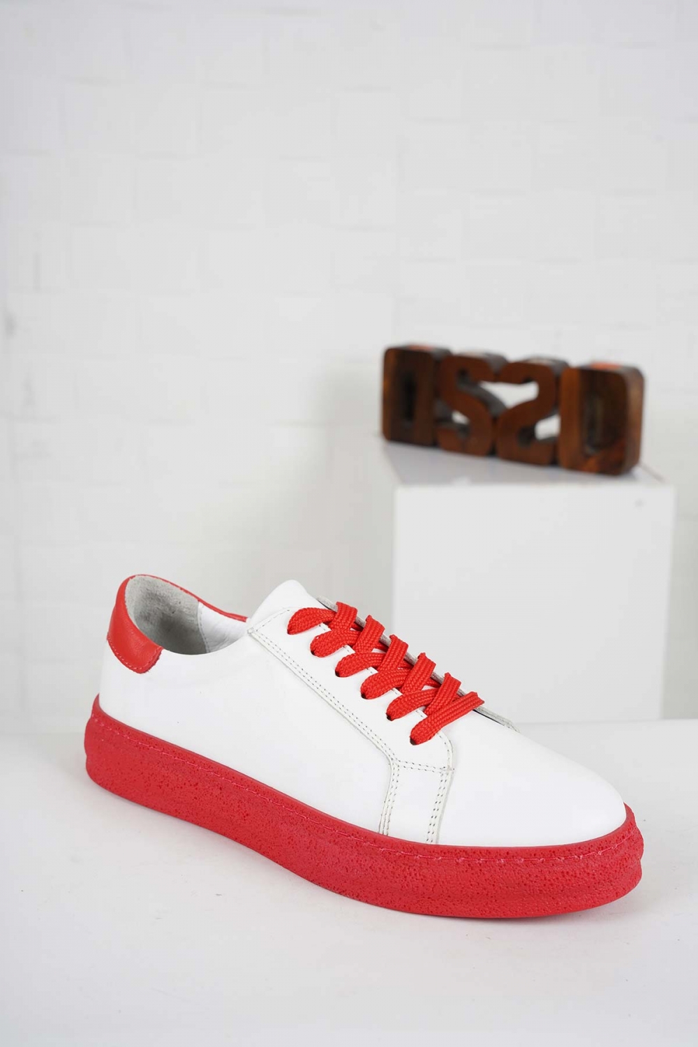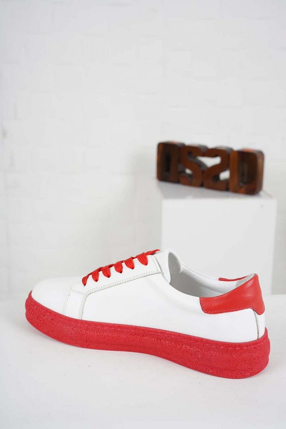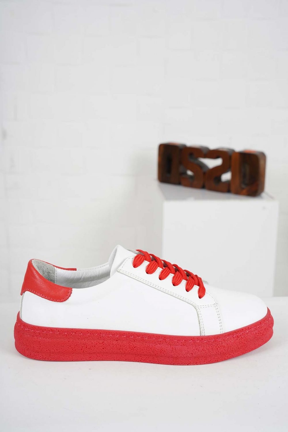 Hakiki Deri Beyaz-Kırmızı Kadın Casual Ayakkabı 241108109
