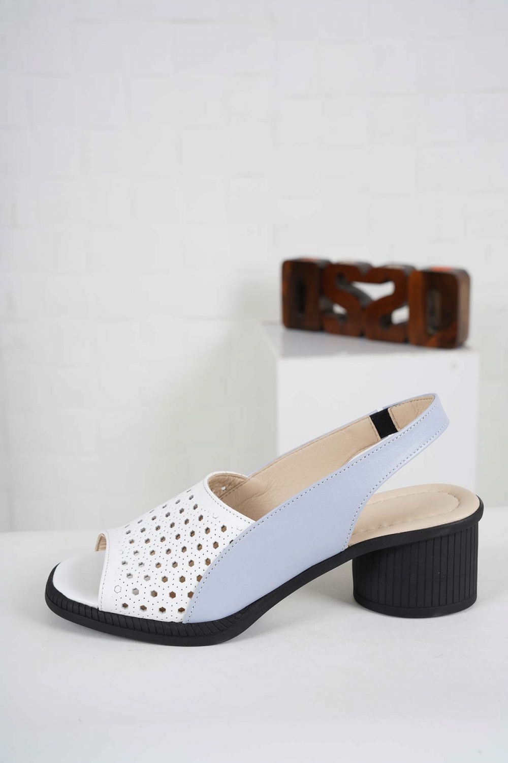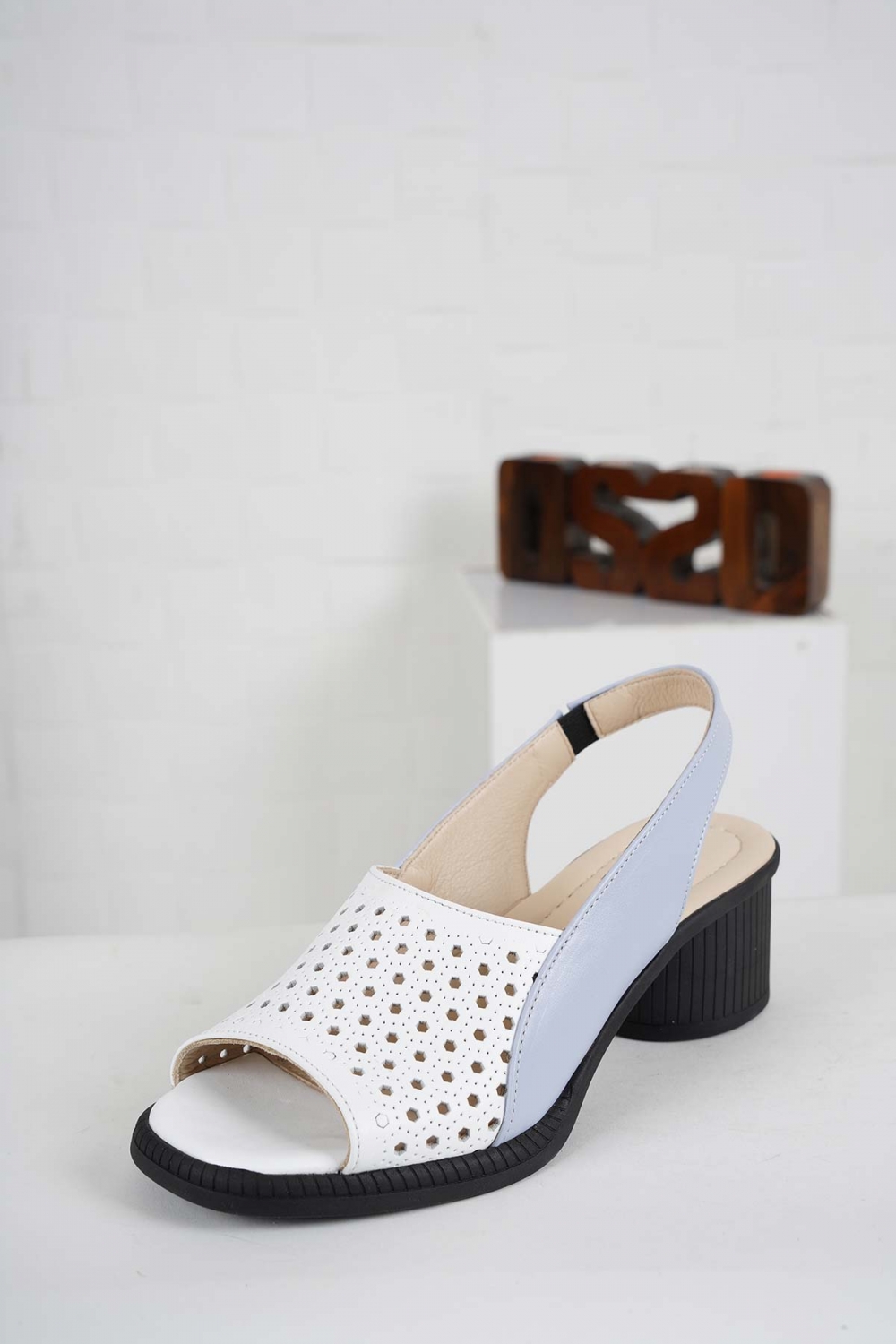 Hakiki Deri Beyaz-Kot Mavi Kadın Topuklu Sandalet 241176502