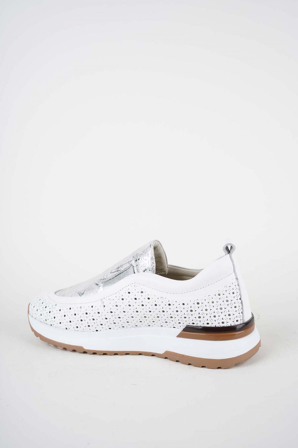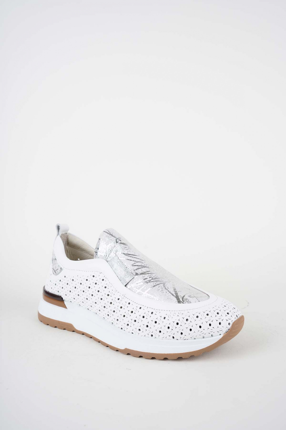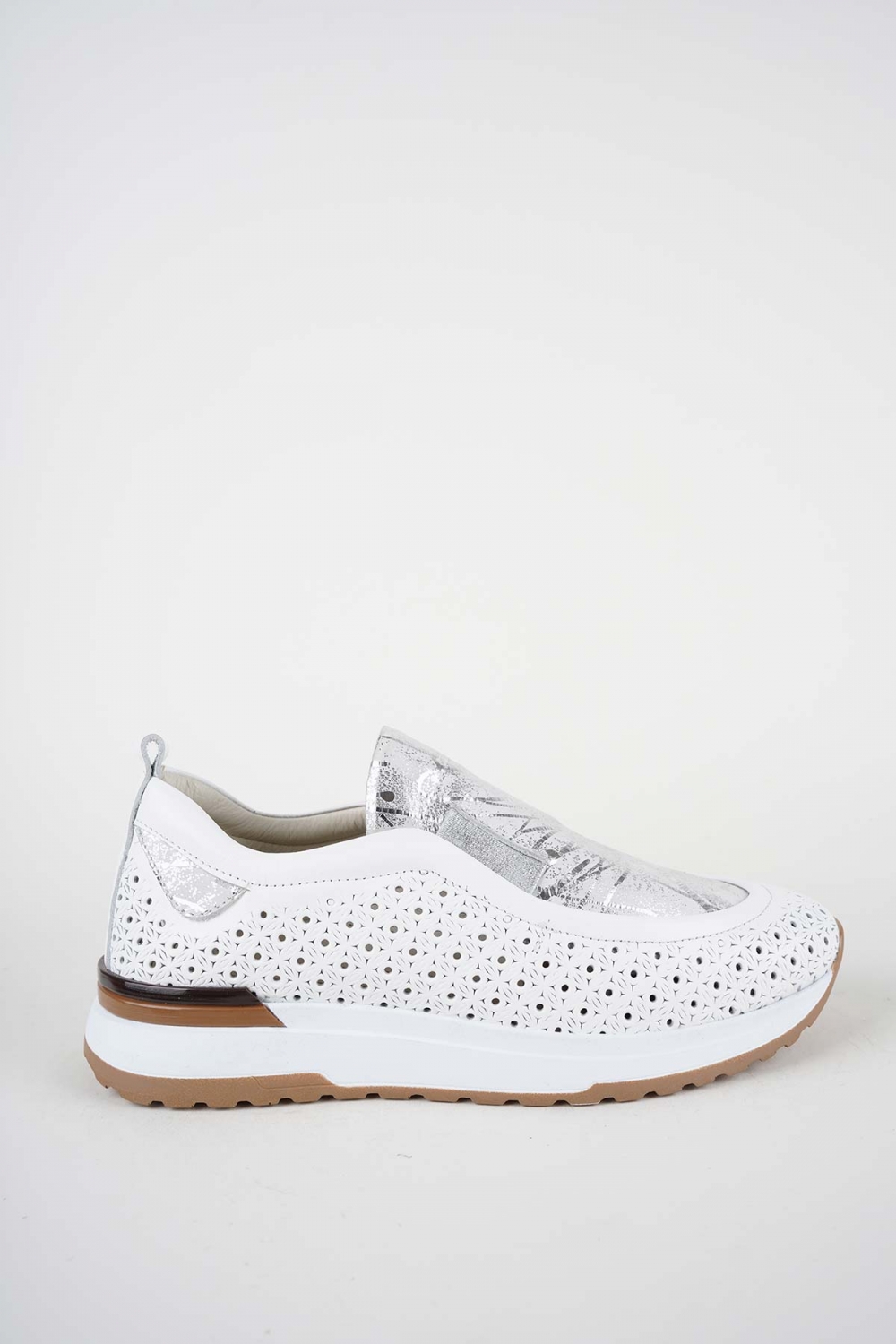 Hakiki Deri Beyaz-Lame Baskılı Kadın Casual Ayakkabı 261136101