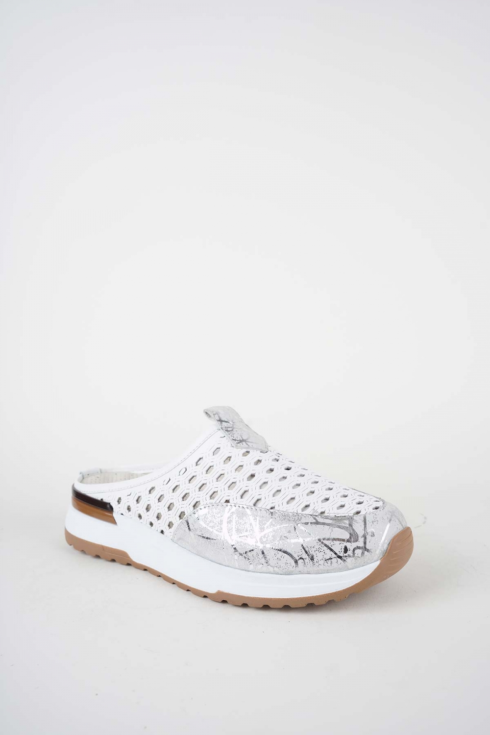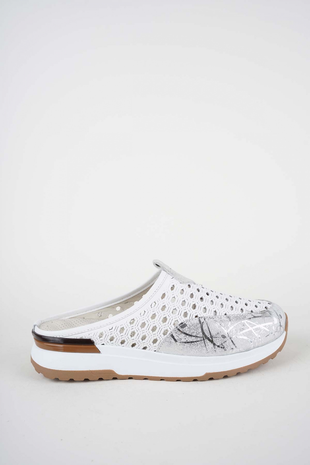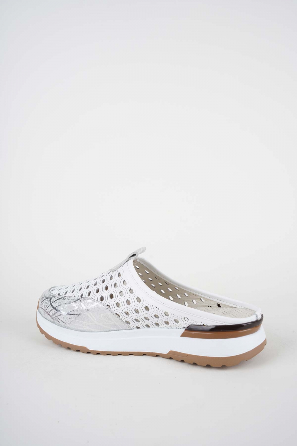 Hakiki Deri Beyaz-Lame Baskılı Kadın Casual Sabo 261136701