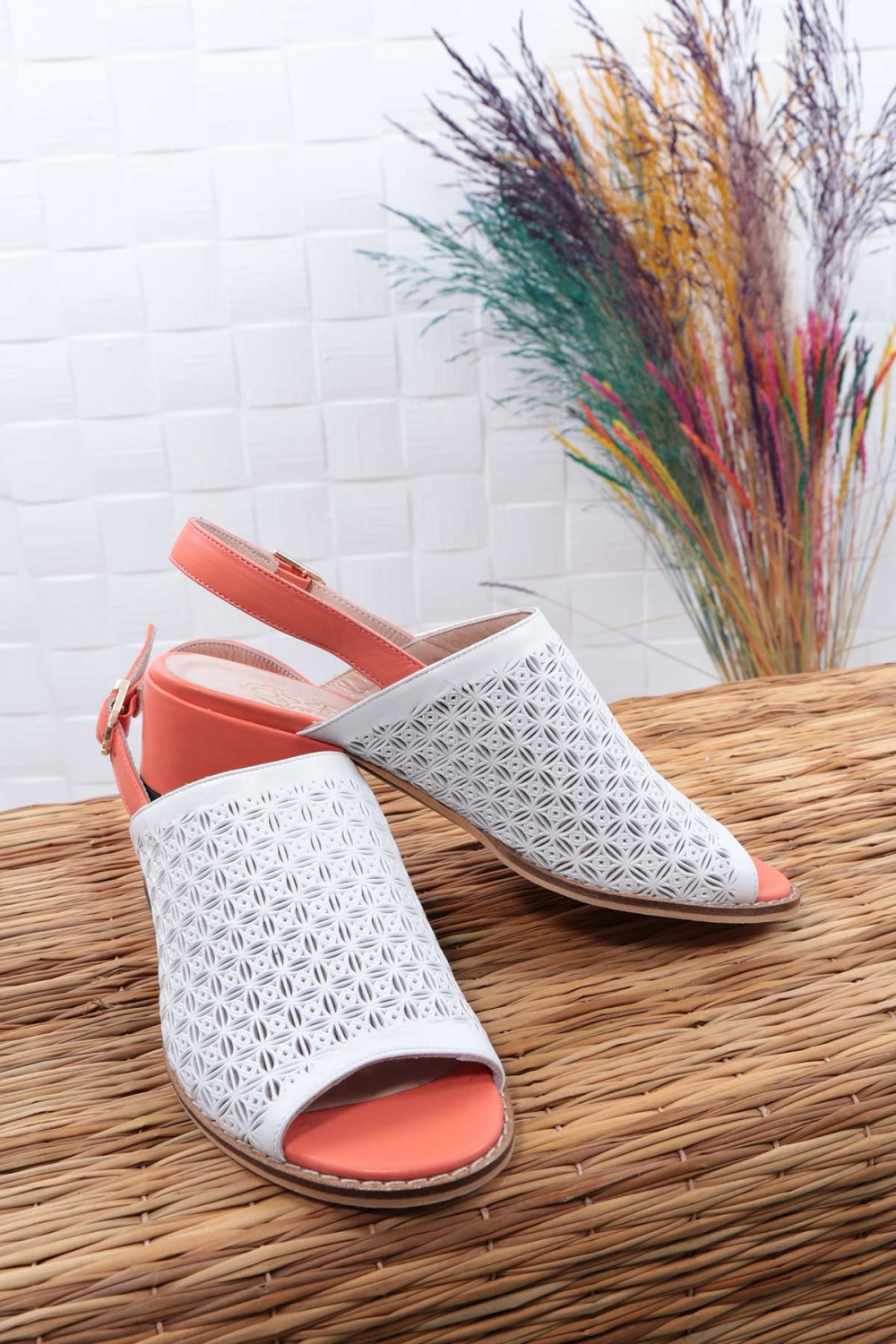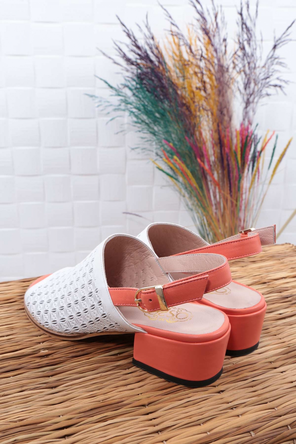 Hakiki Deri Beyaz-Nar Çiçeği Kadın Burun Kapalı Sandalet 211127507