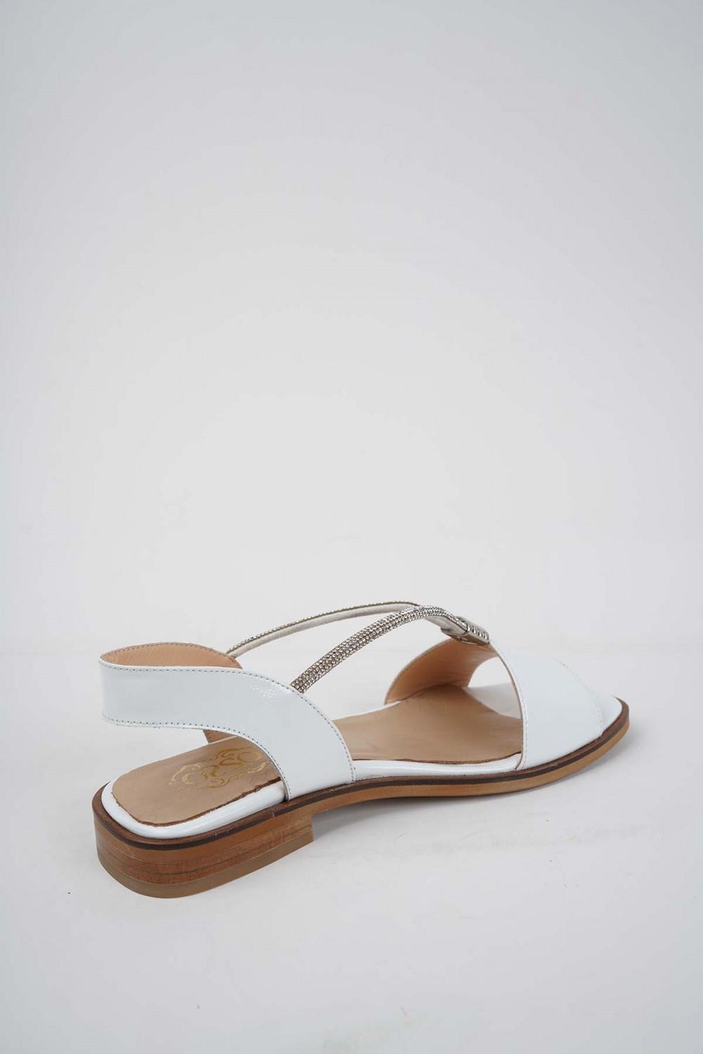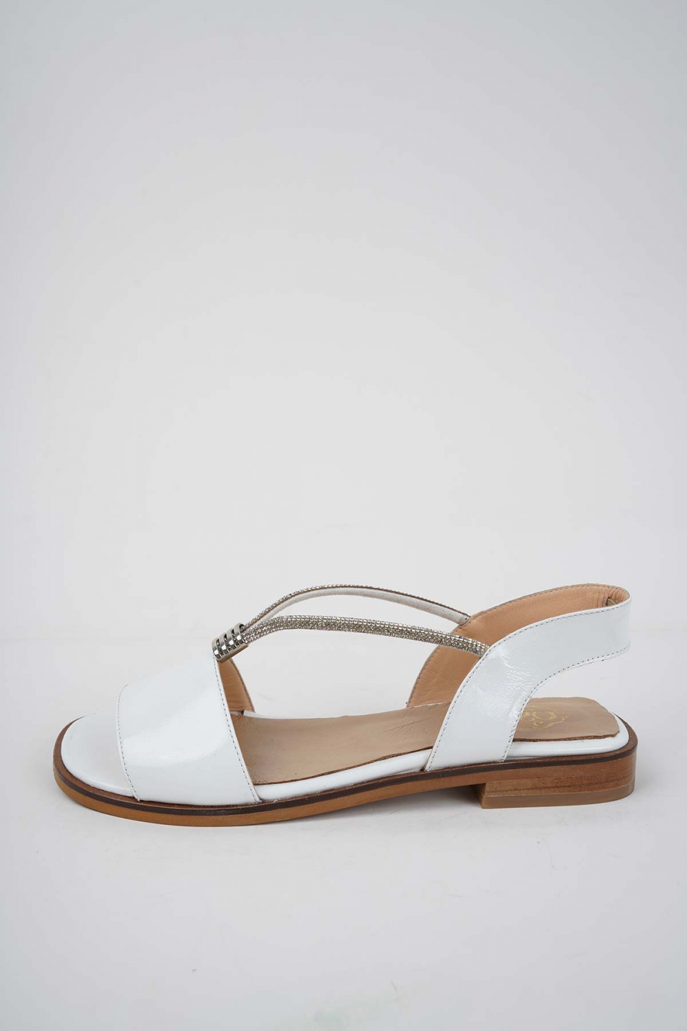 Hakiki Deri Beyaz Rugan Kadın Alçak Topuklu Sandalet 251141510