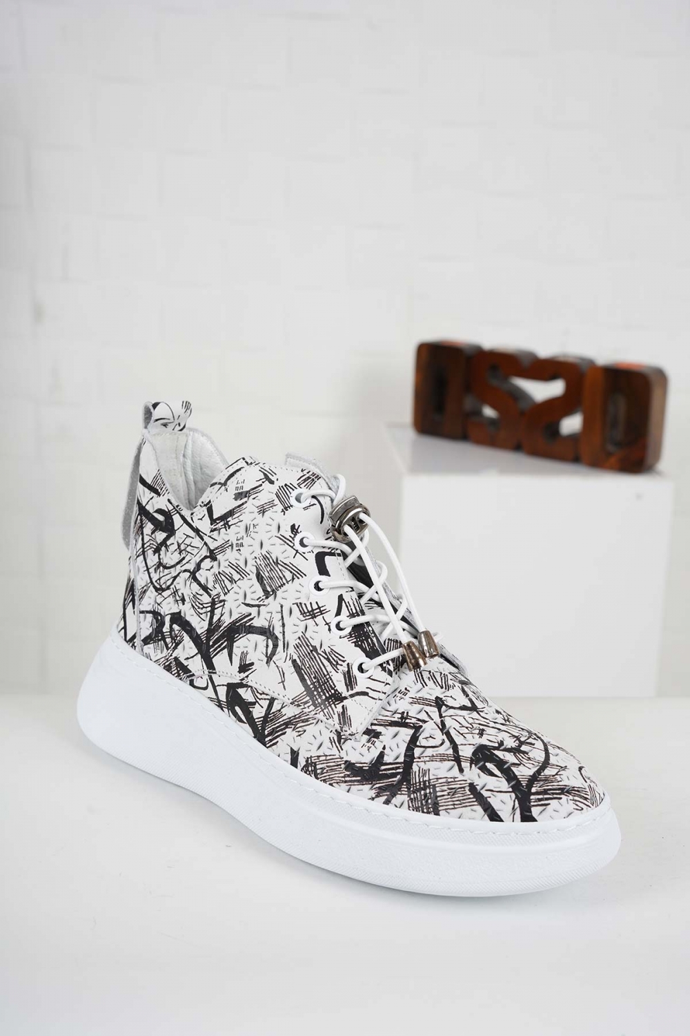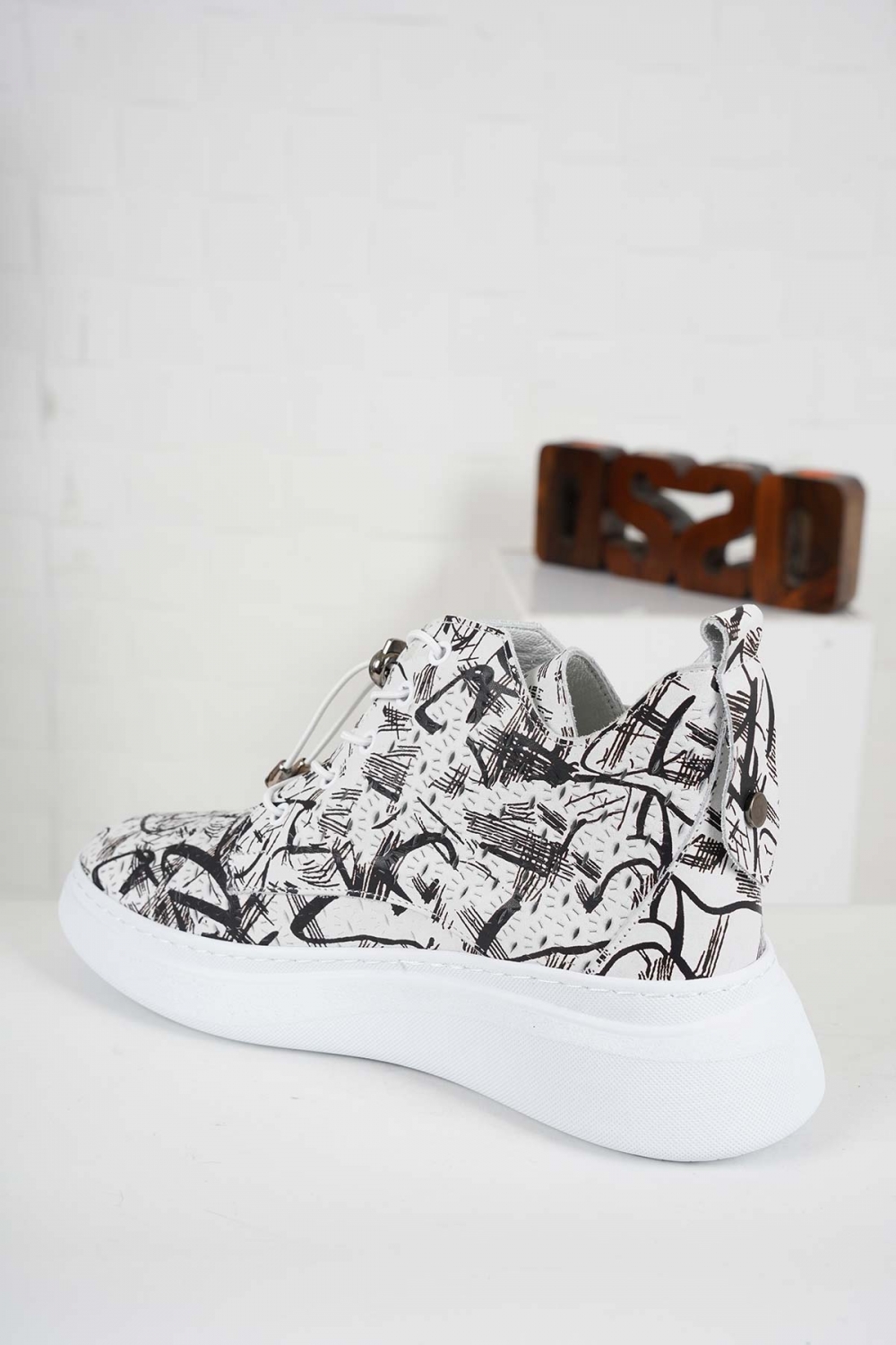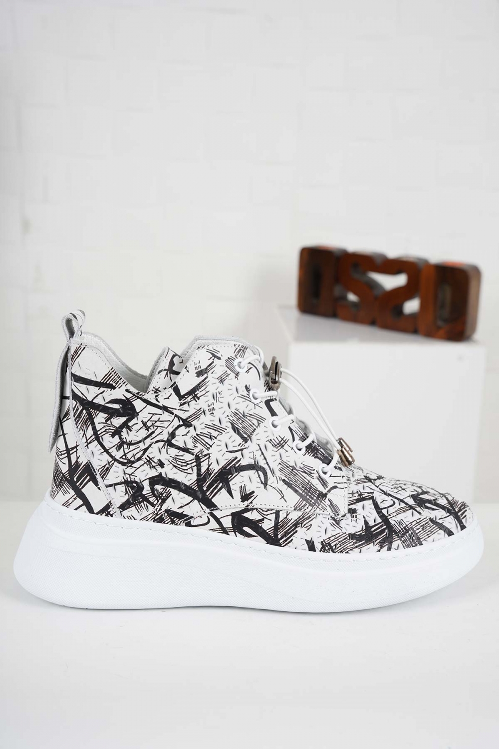 Hakiki Deri Beyaz_Siyah Baskılı Kadın Casual Ayakkabı 241186107