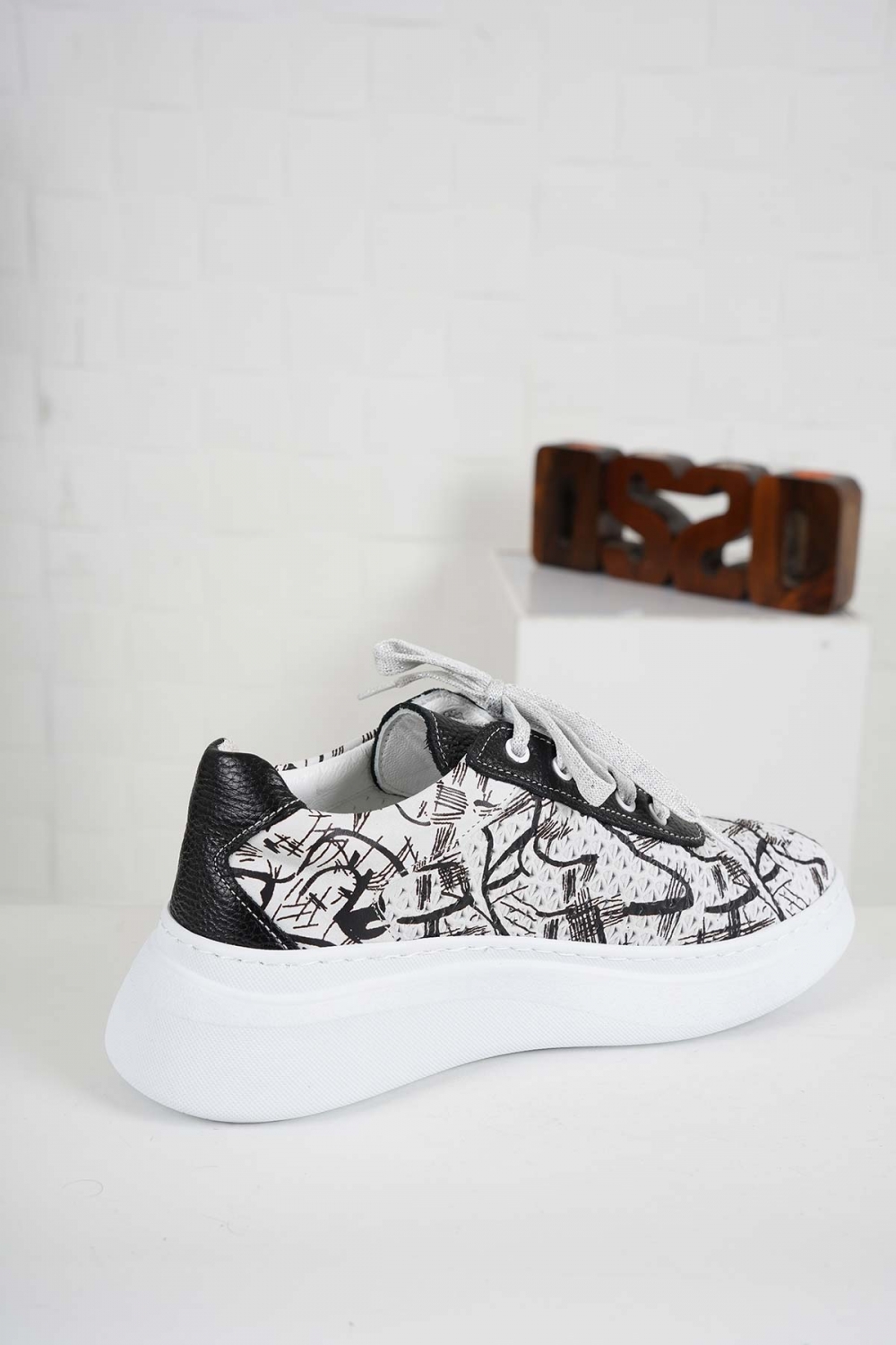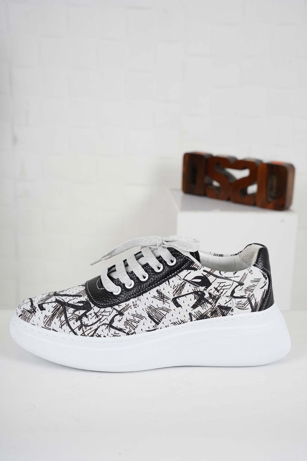 Hakiki Deri Beyaz_Siyah Baskılı-Siy.Flt Kadın Casual Ayakkabı 241186100