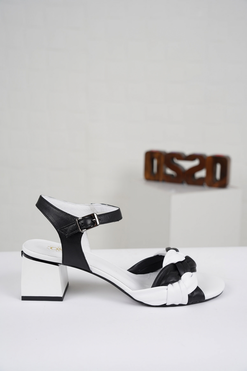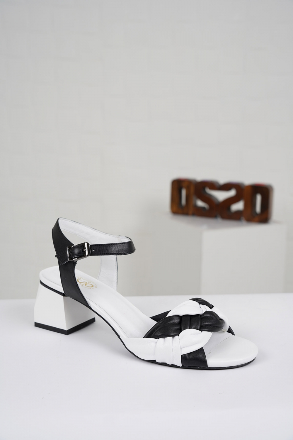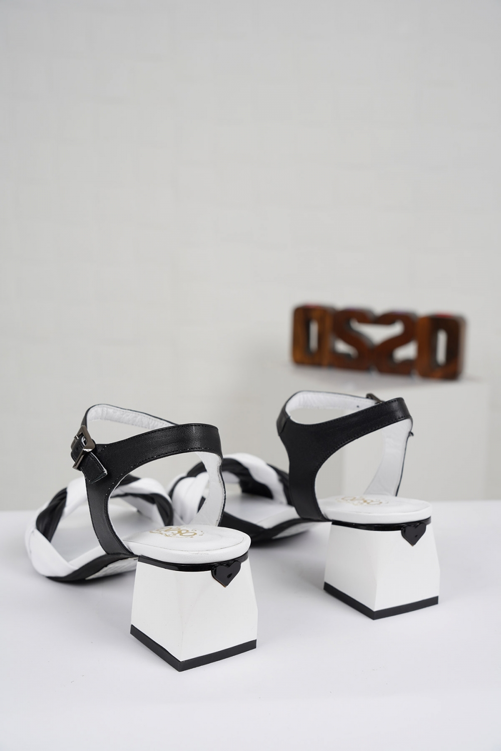Hakiki Deri Beyaz-Siyah Kadın Topuklu Sandalet 221127524