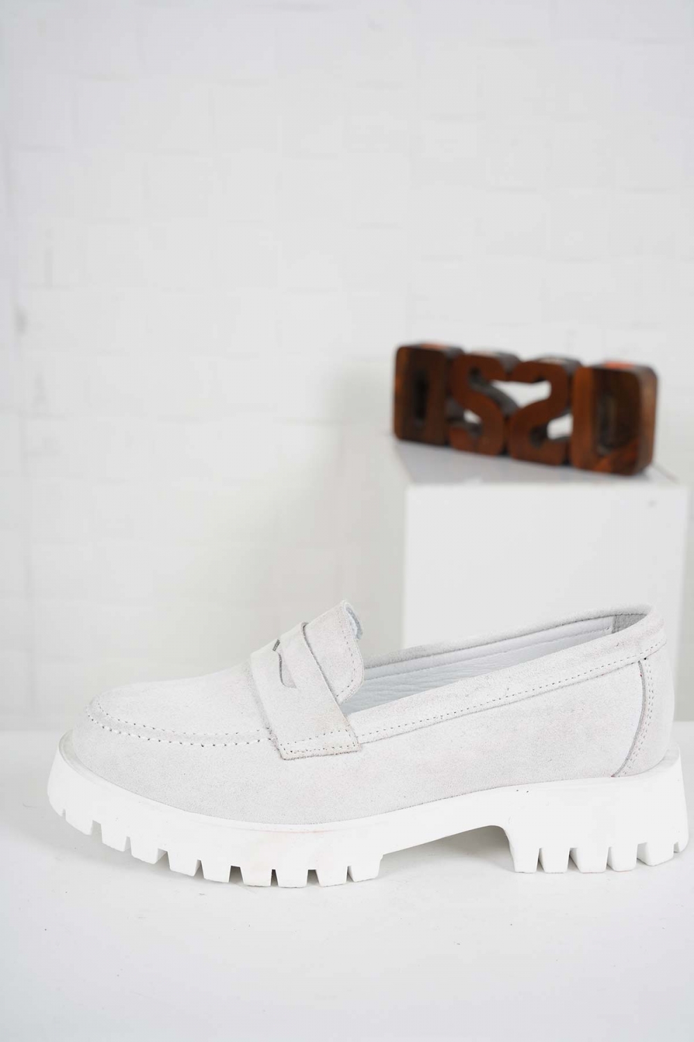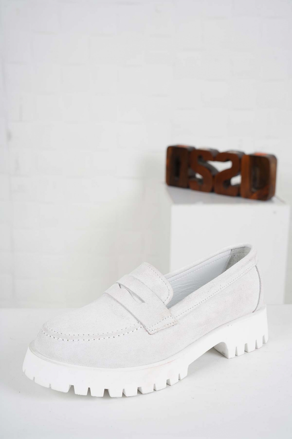 Hakiki Deri Beyaz Süet Kadın Casual Ayakkabı 231108119