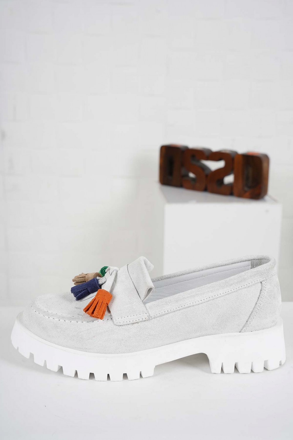 Hakiki Deri Beyaz Süet Kadın Casual Ayakkabı 241108105