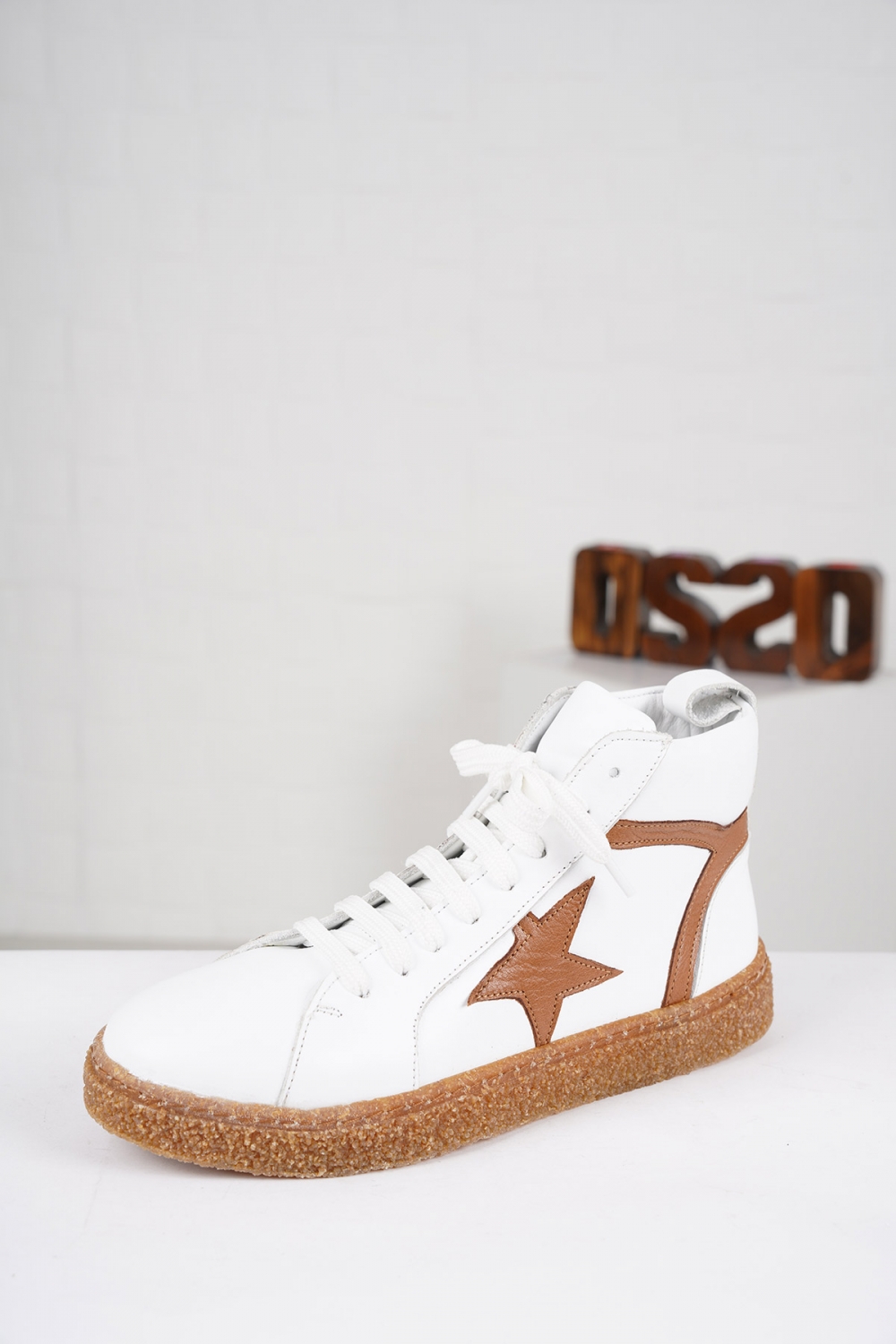 Hakiki Deri Beyaz-Taba Kadın Kısa Bot 222220207