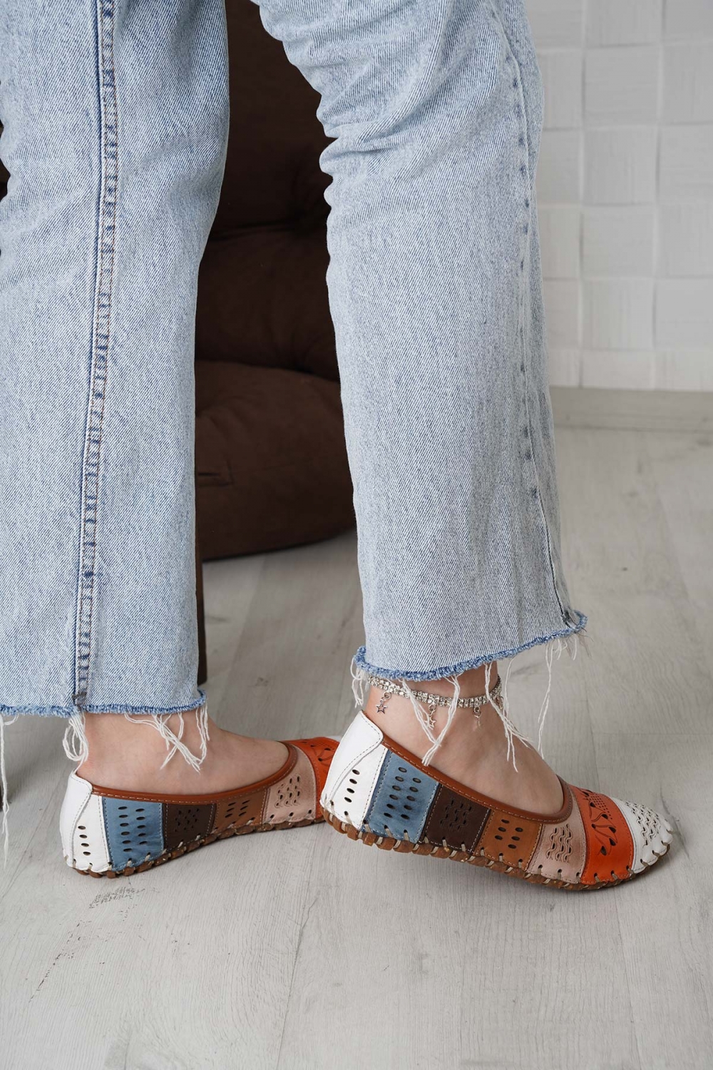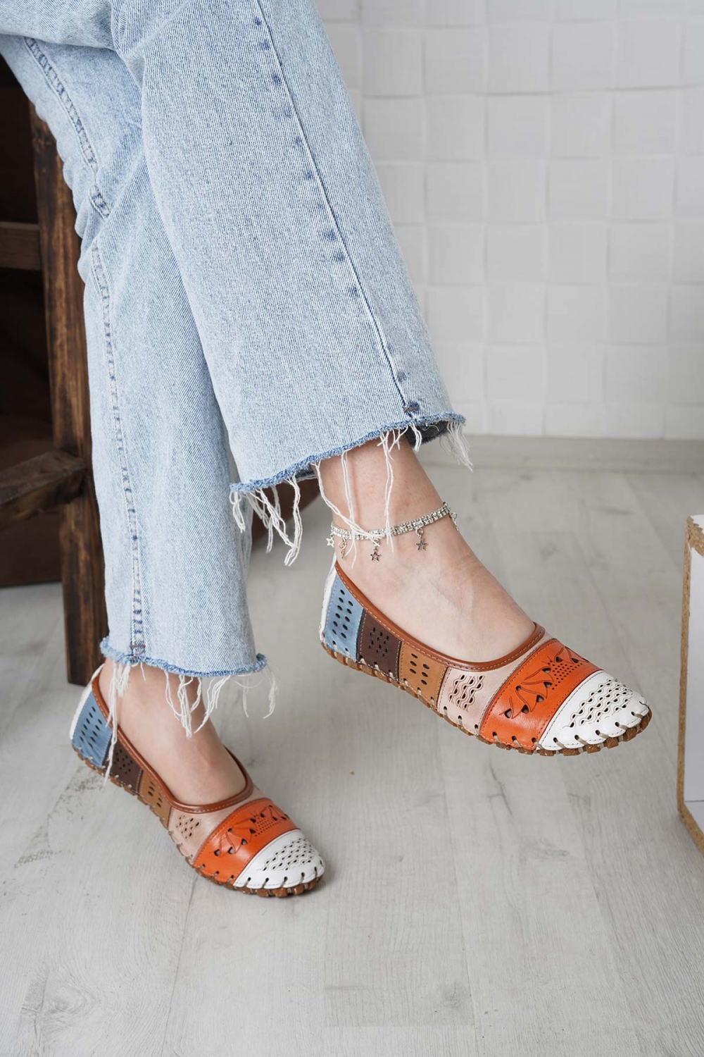 Hakiki Deri Beyaz-Turuncu-Pudra-Taba-Kahve-Mavi Kadın Comfort Ayakkabı 231220111