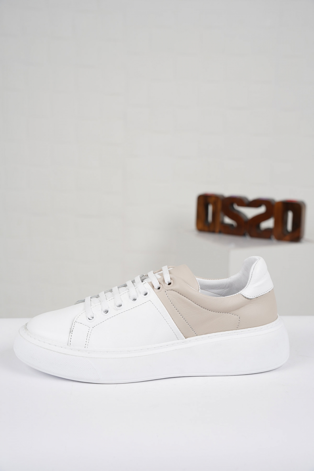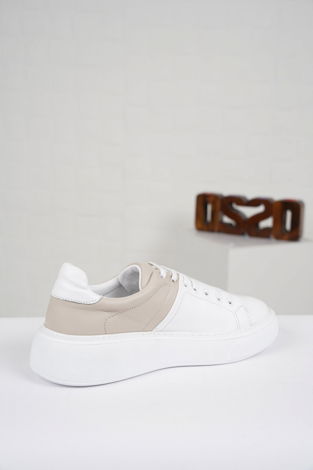 Hakiki Deri Beyaz-Vizon Kadın Sneaker Ayakkabı 212220102