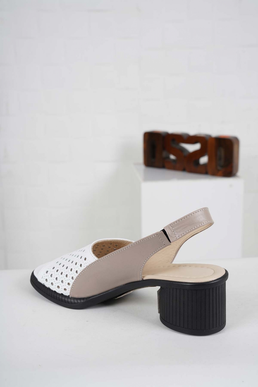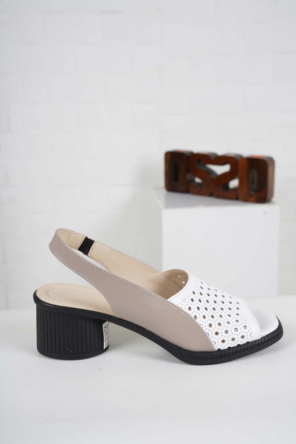 Hakiki Deri Beyaz-Vizon Kadın Topuklu Sandalet 241176502