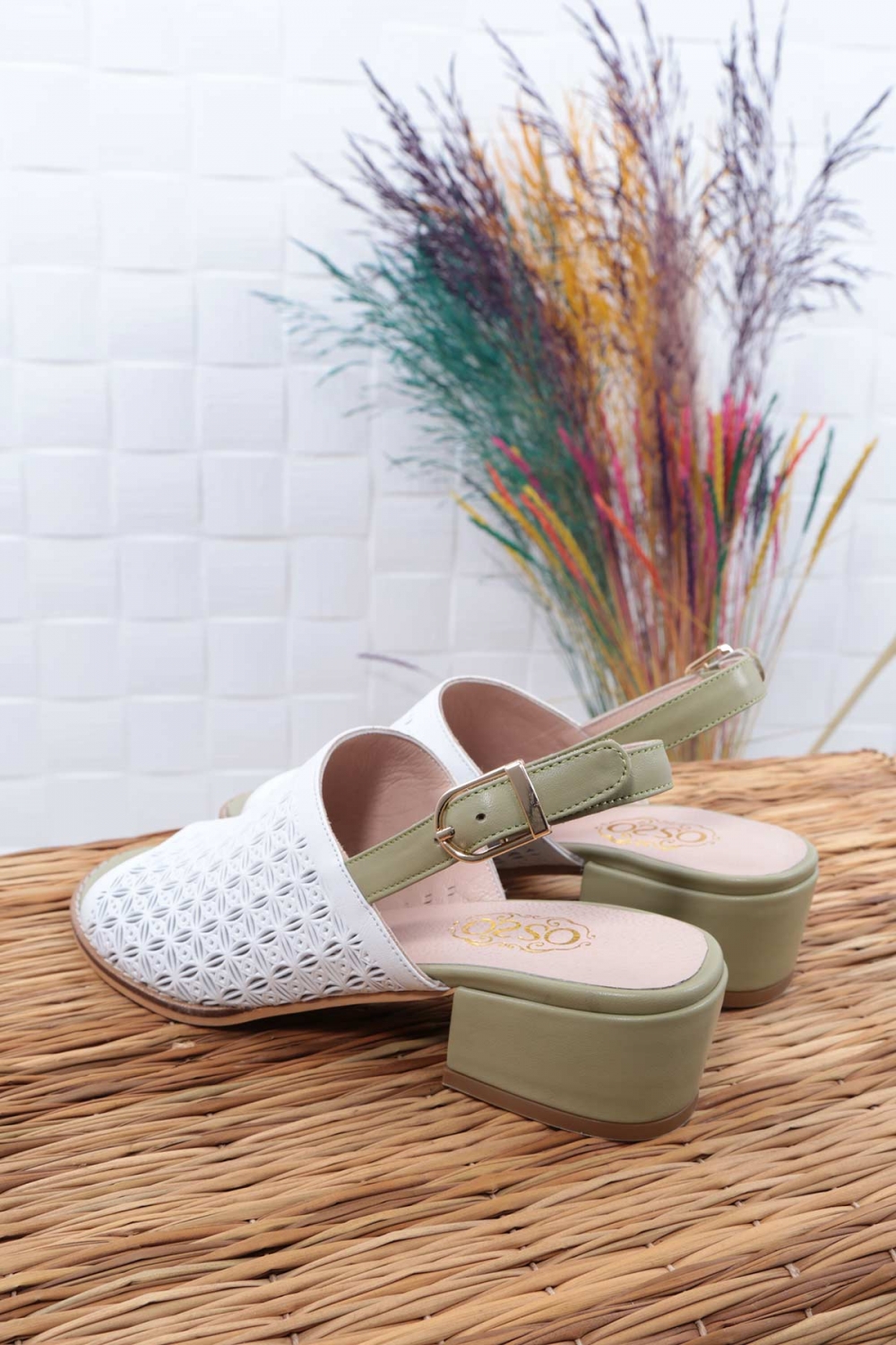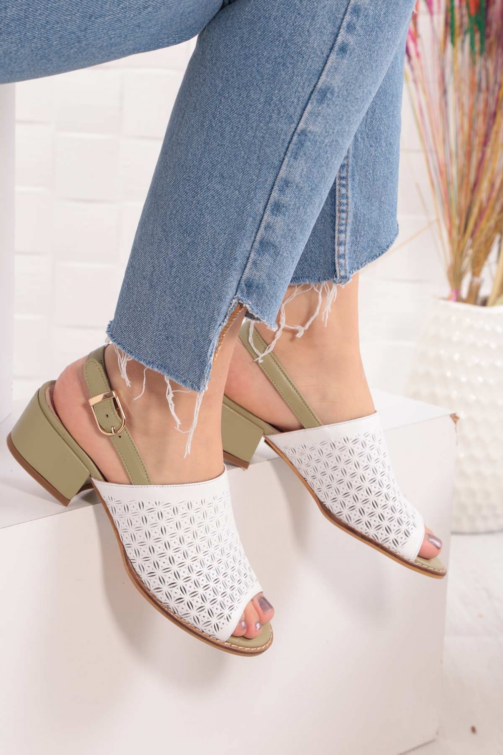 Hakiki Deri Beyaz-Yeşil Kadın Burun Kapalı Sandalet 211127507