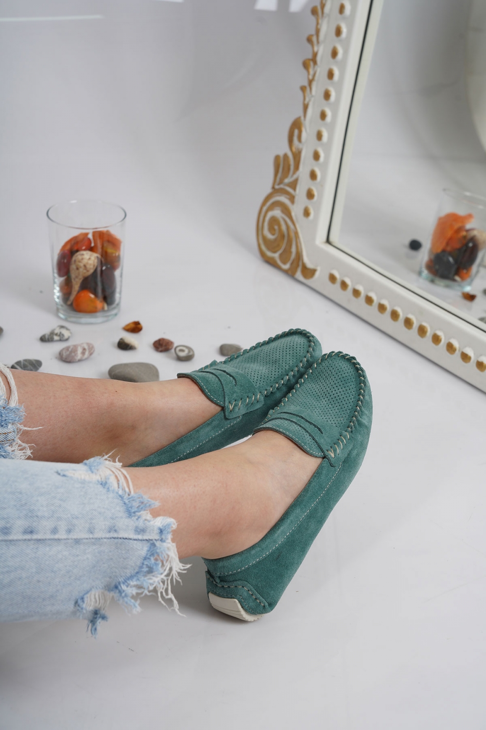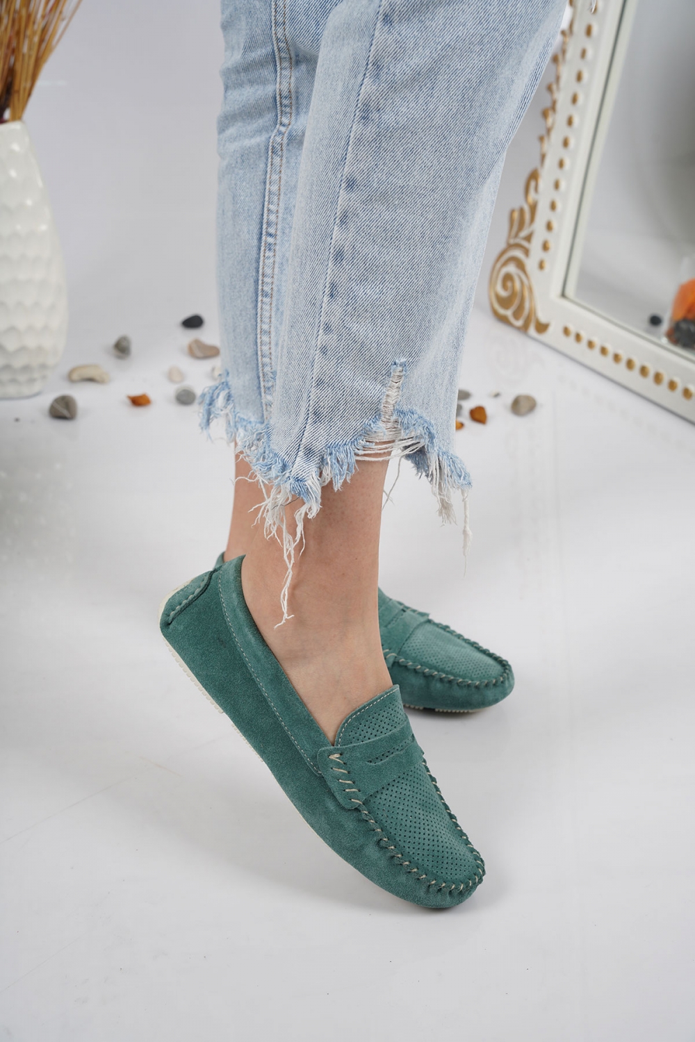 Hakiki Deri Blue Oil Süet Kadın Makosen Ayakkabı 221209115