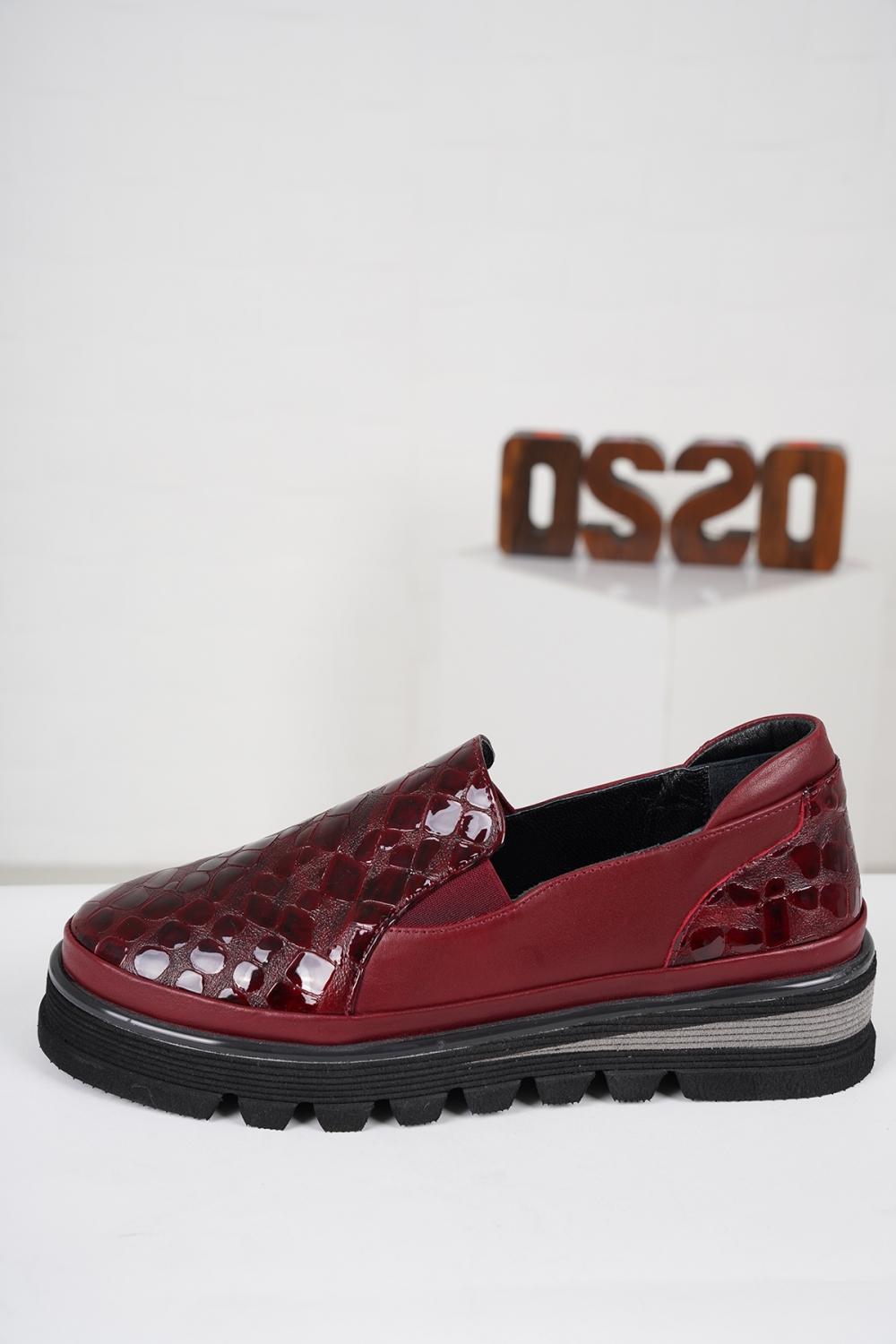 Hakiki Deri Bordo Baskı-Bordo Kadın Casual Ayakkabı 222186101