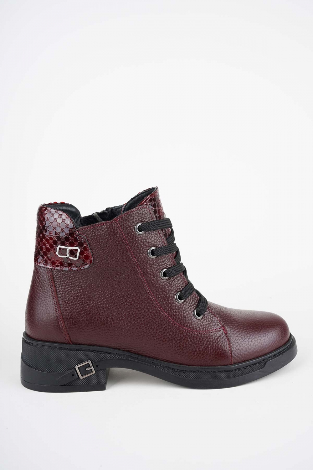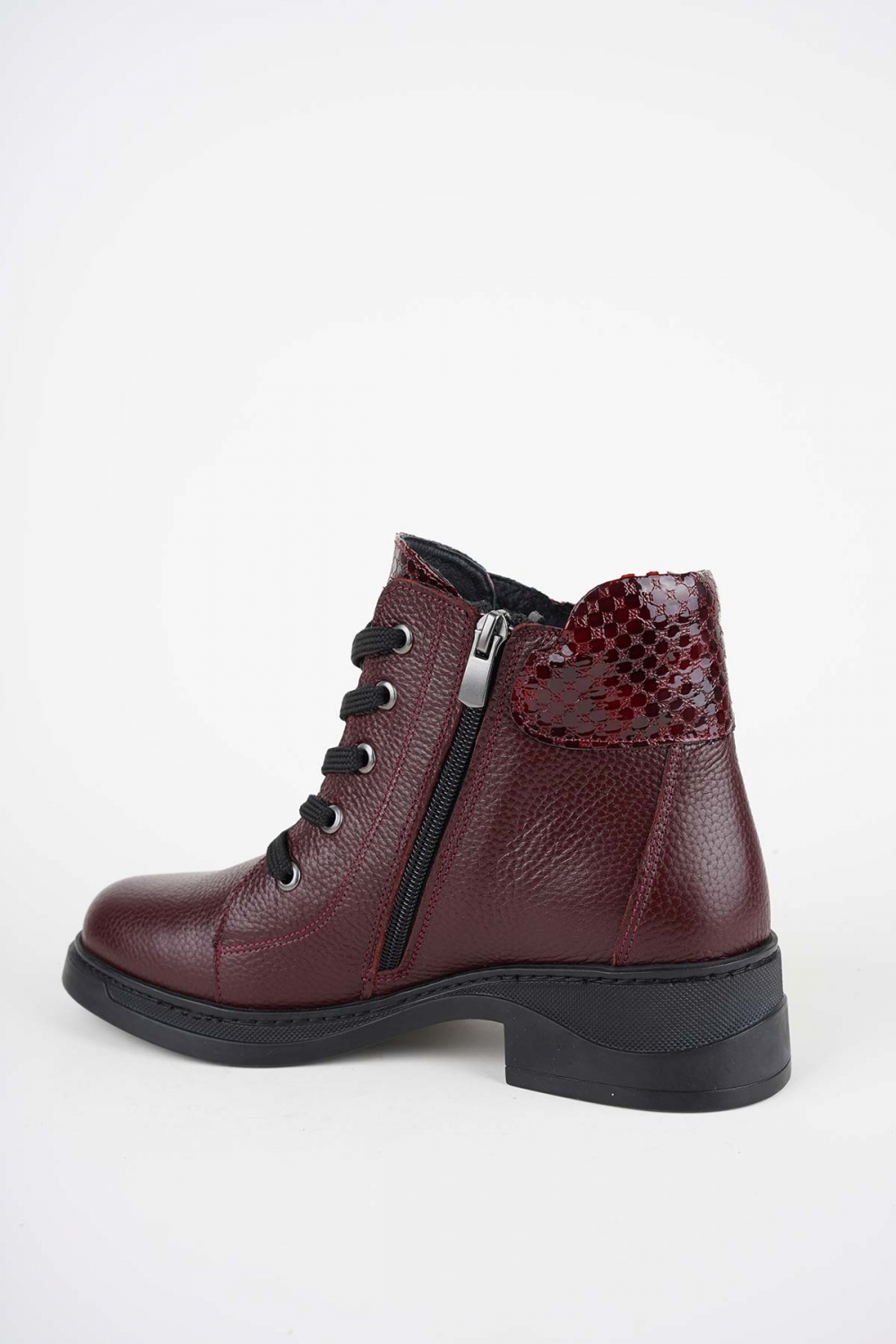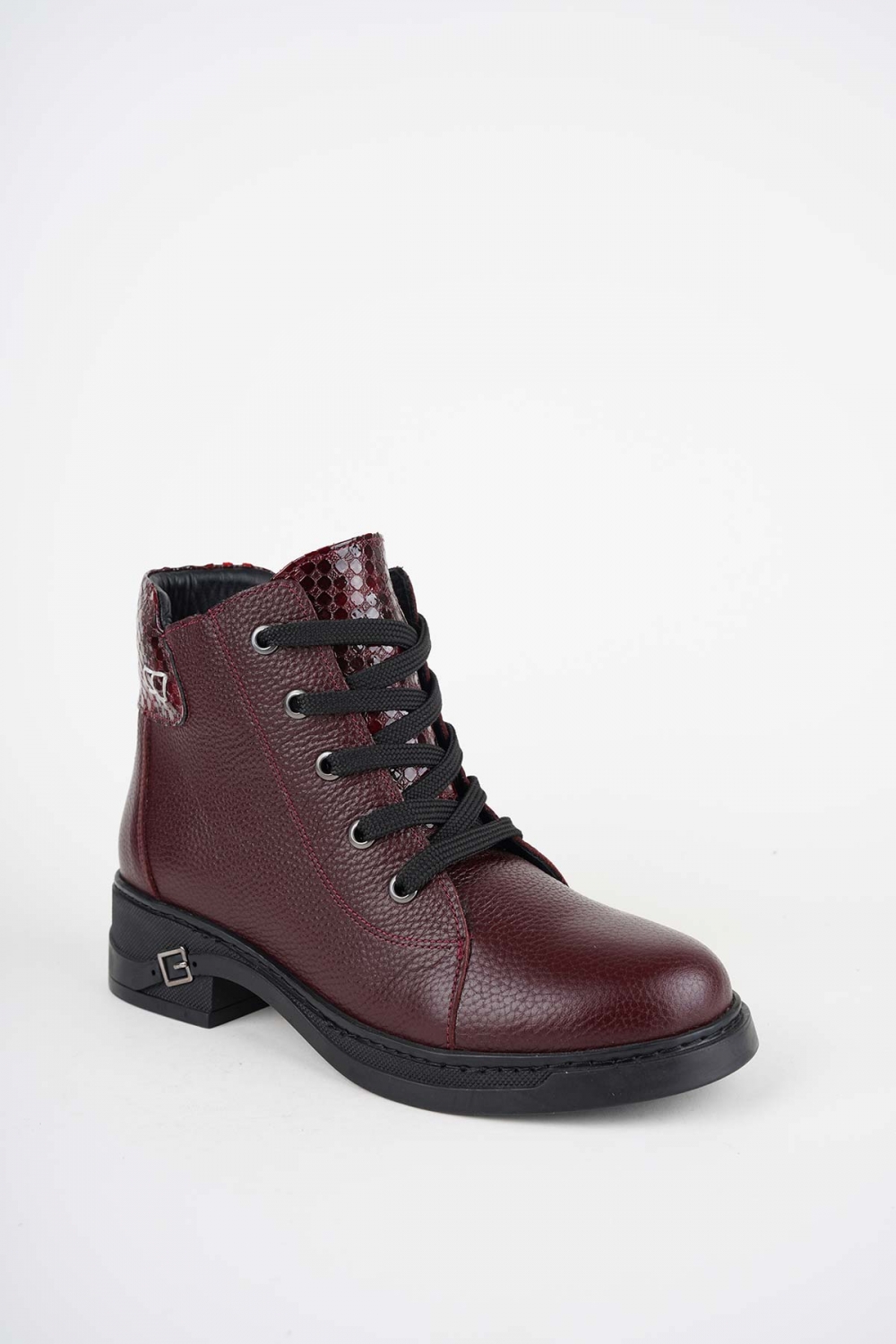 Hakiki Deri Bordo Floter-Bordo Baskılı Kadın Casual Bot 252136209