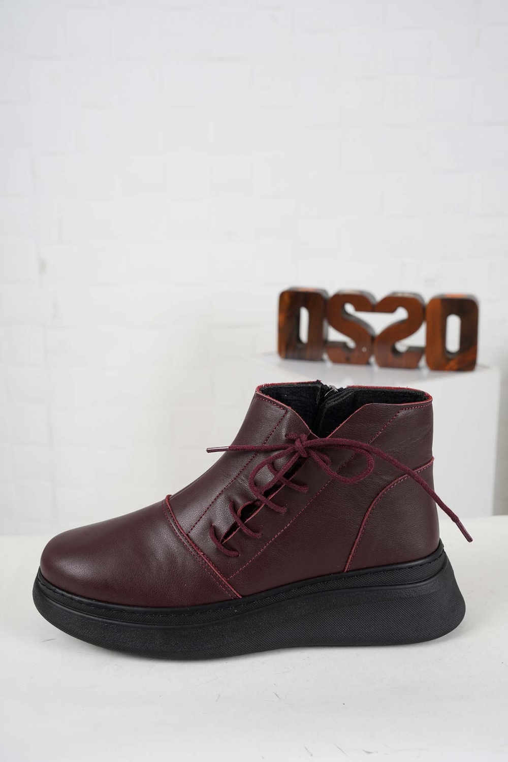 Hakiki Deri Bordo Kadın Casual Bot 242186202