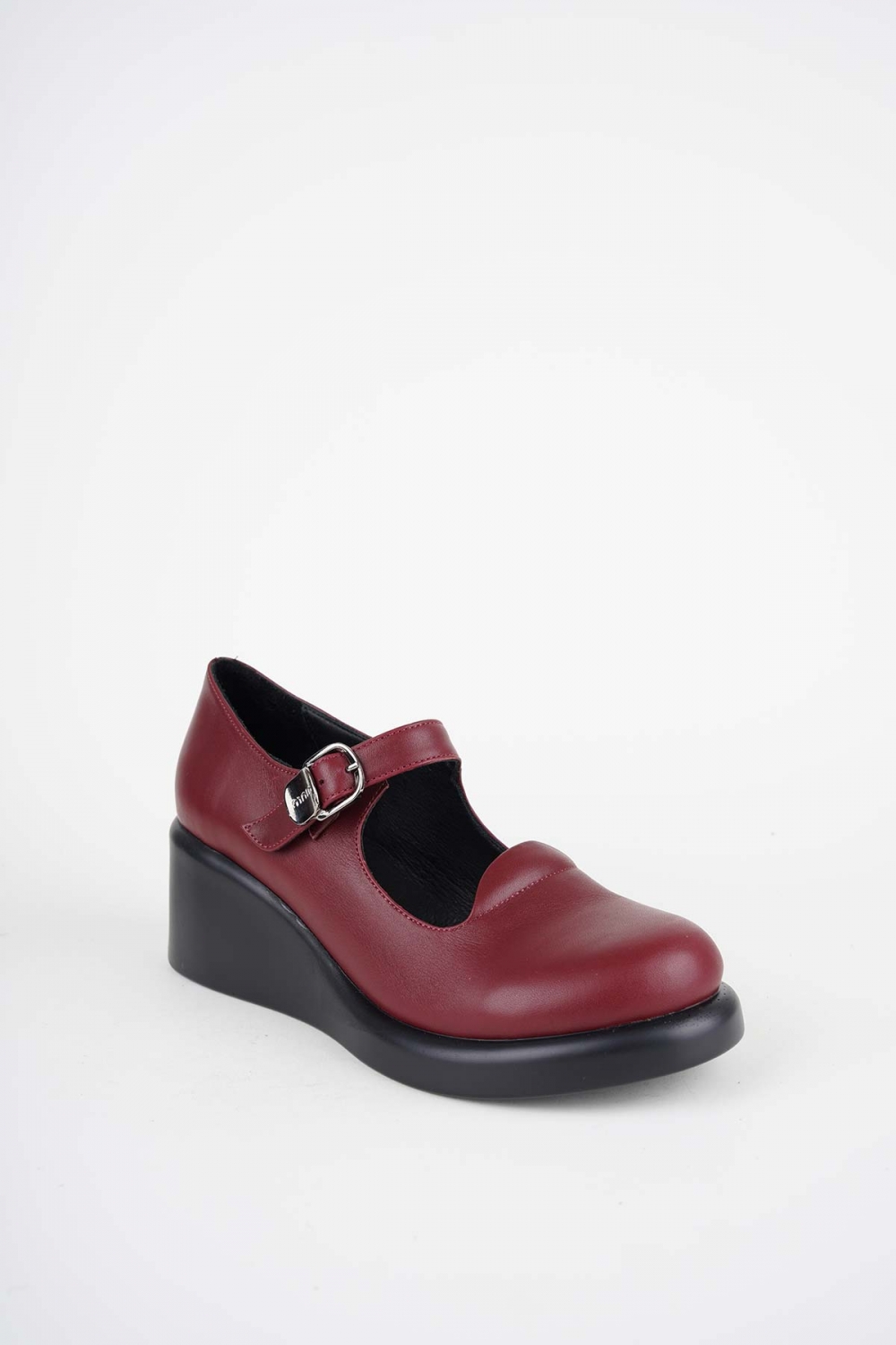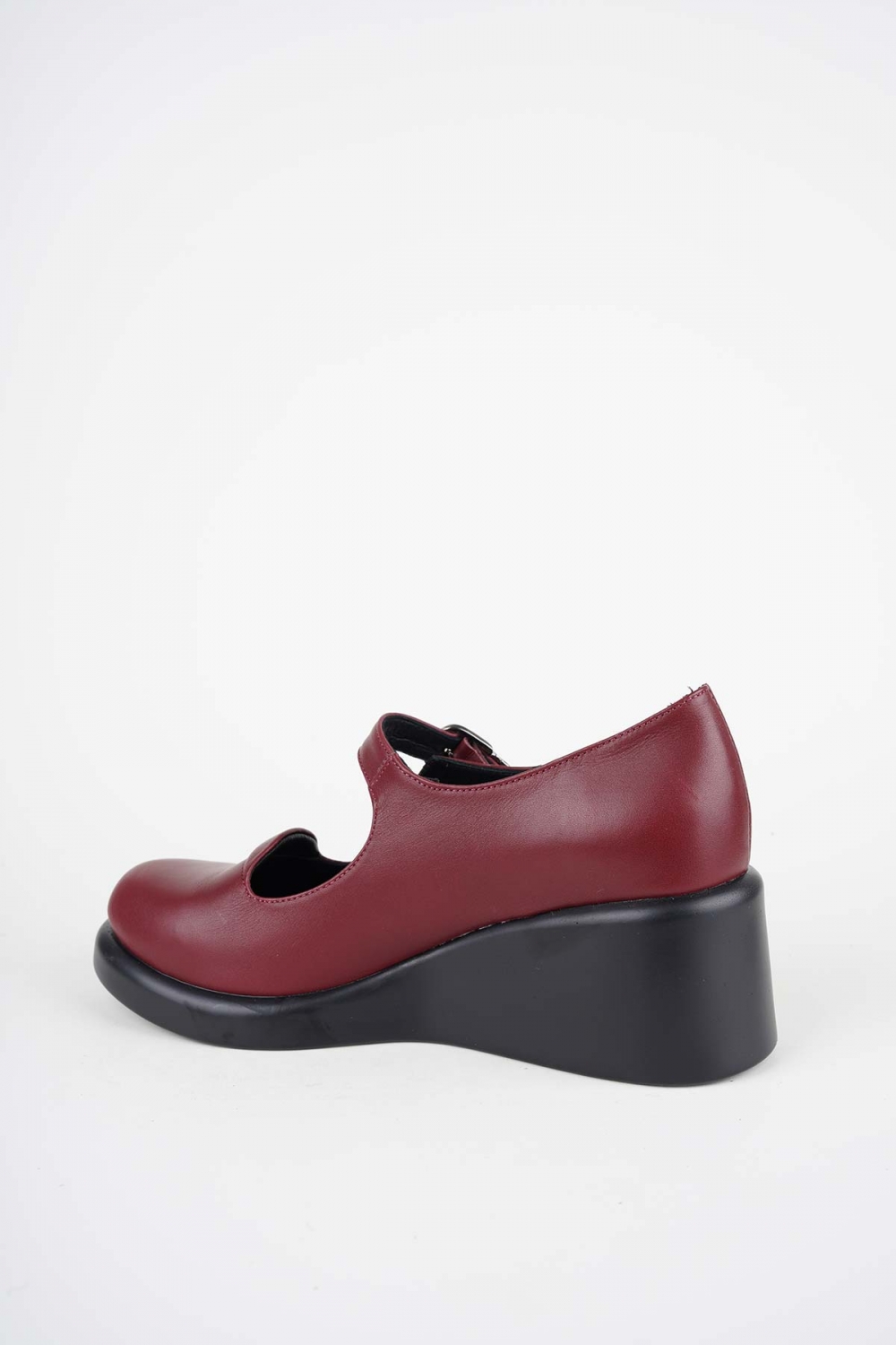 Hakiki Deri Bordo Kadın Dolgu Topuklu Ayakkabı 252229104