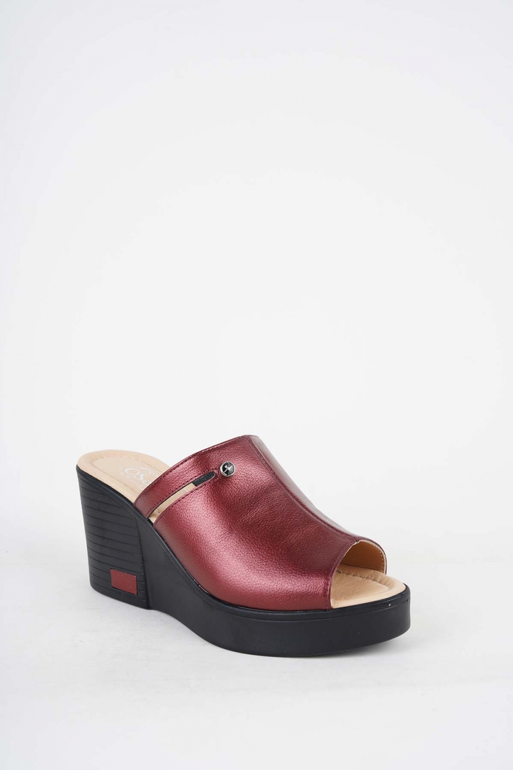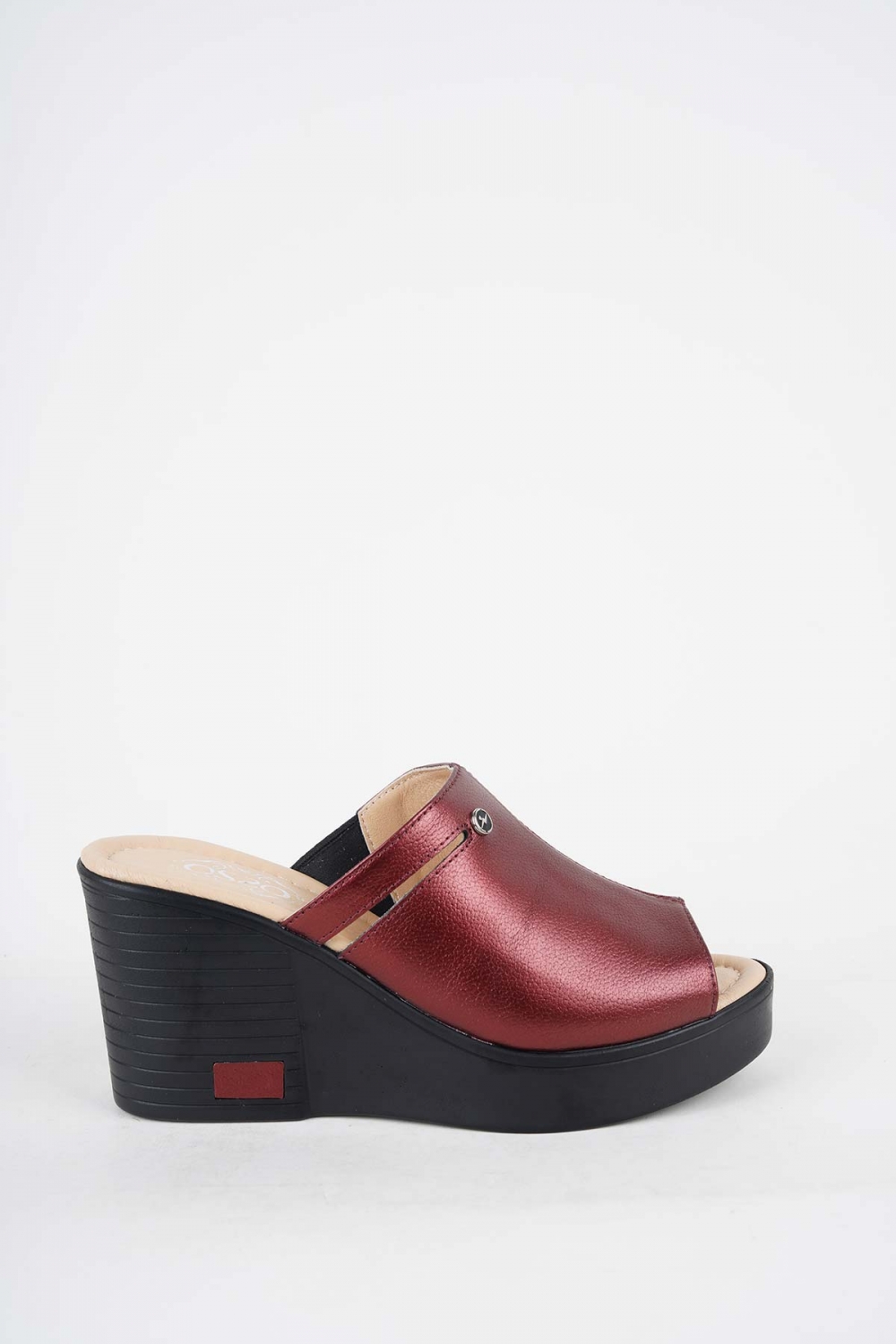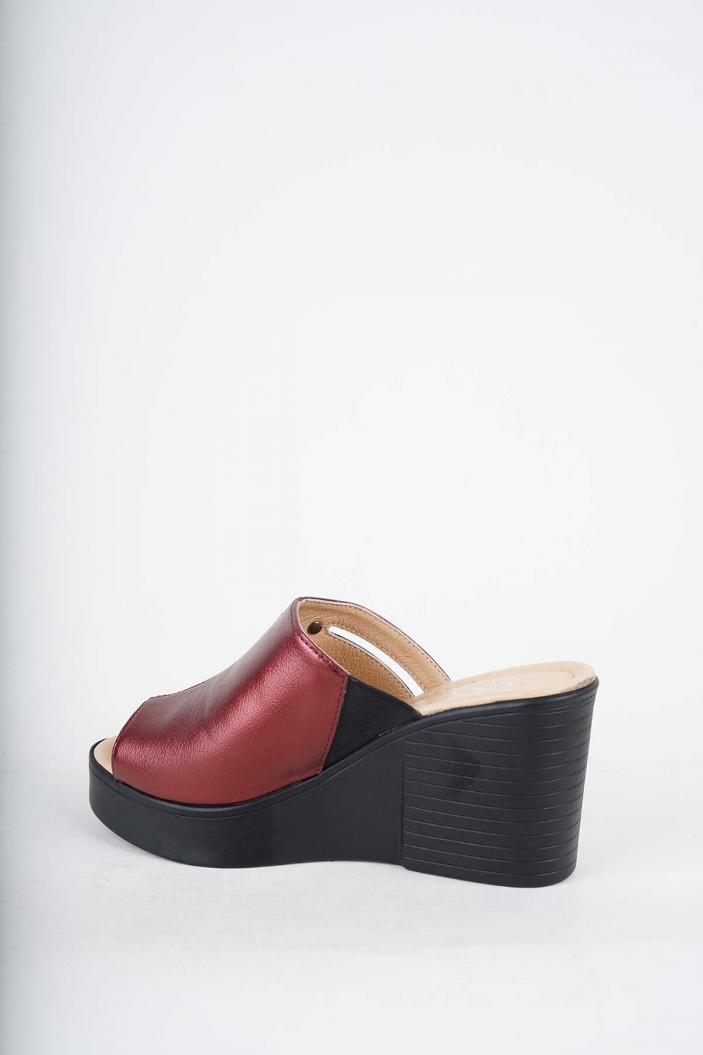 Hakiki Deri Bordo Kadın Dolgu Topuklu Terlik 251189601