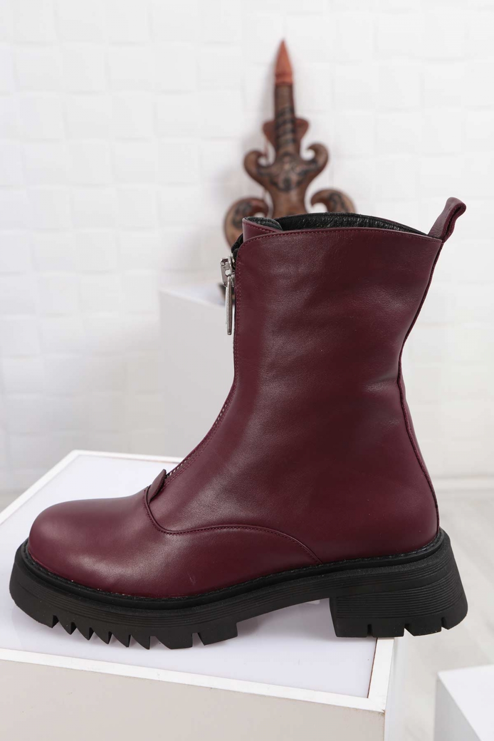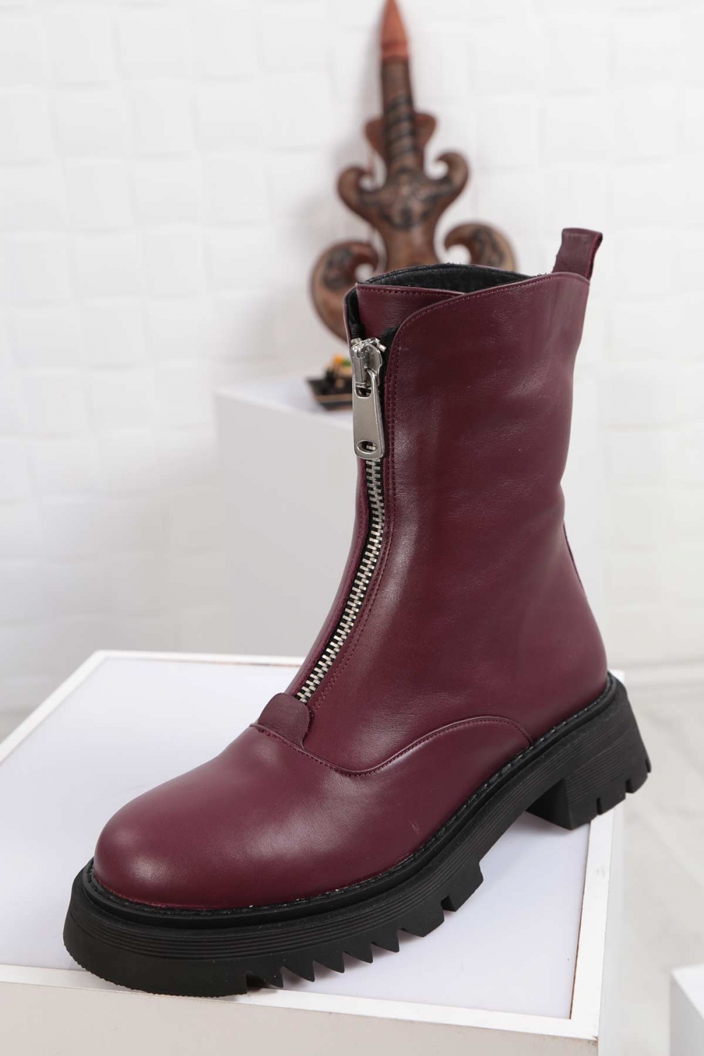 Hakiki Deri Bordo Kadın Postal Bot 212127204