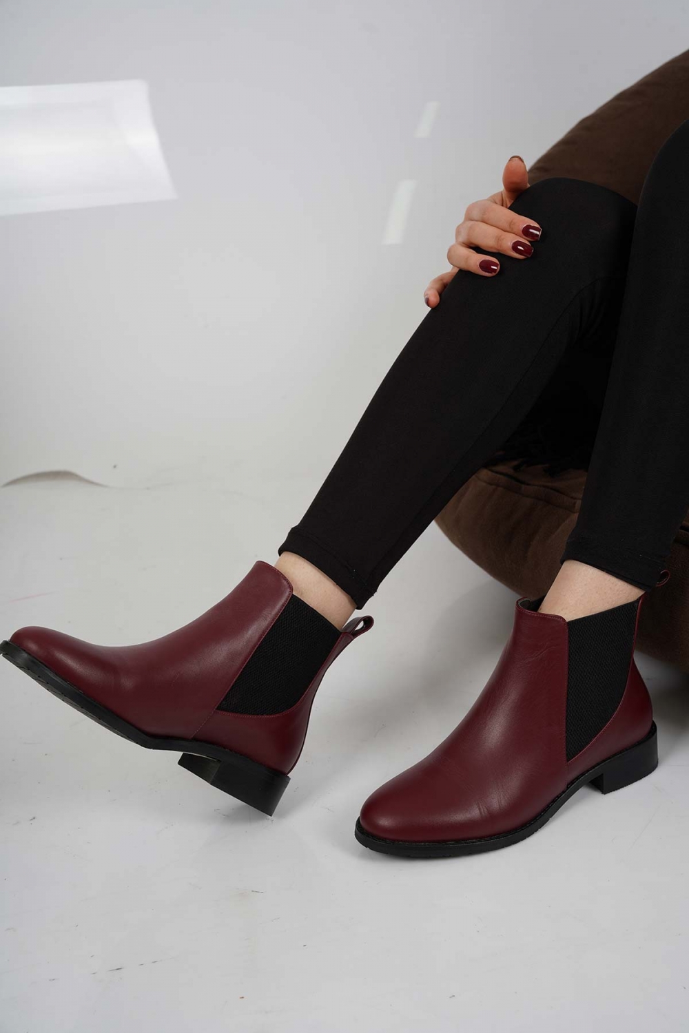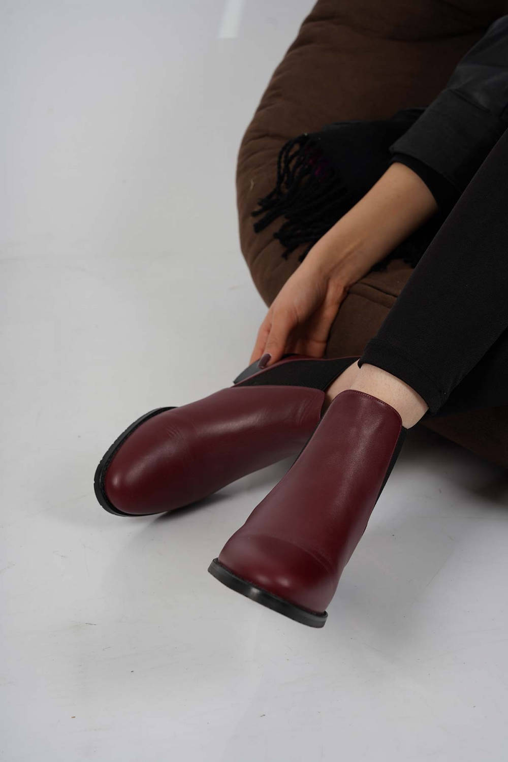 Hakiki Deri Bordo Kadın Topuklu Bot 232127204