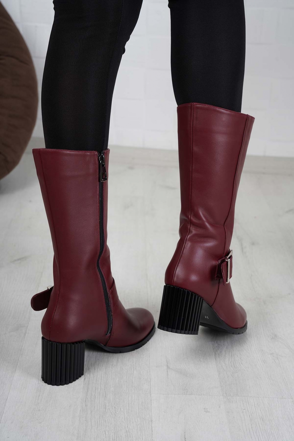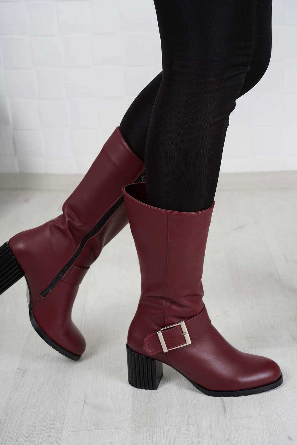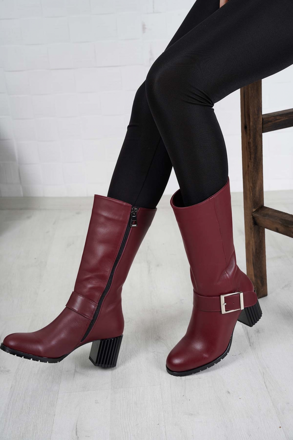 Hakiki Deri Bordo Kadın Topuklu Bot 232127222