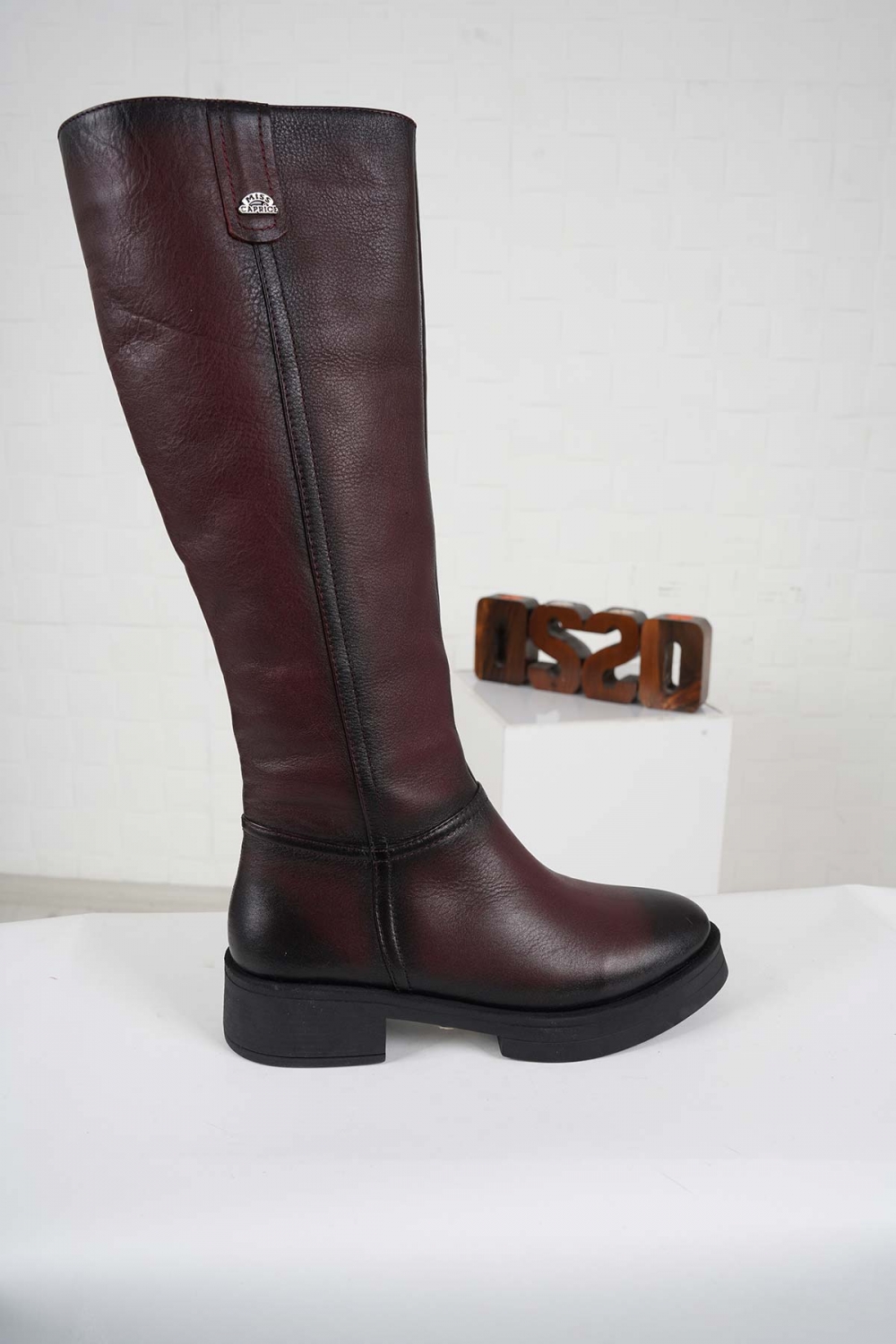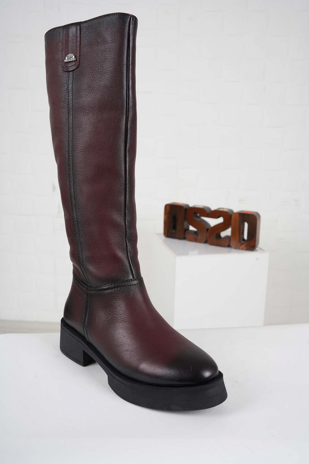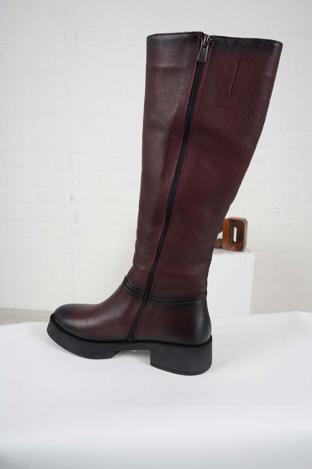 Hakiki Deri Bordo Kadın Topuklu Çizme 232136307