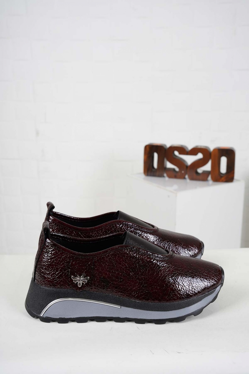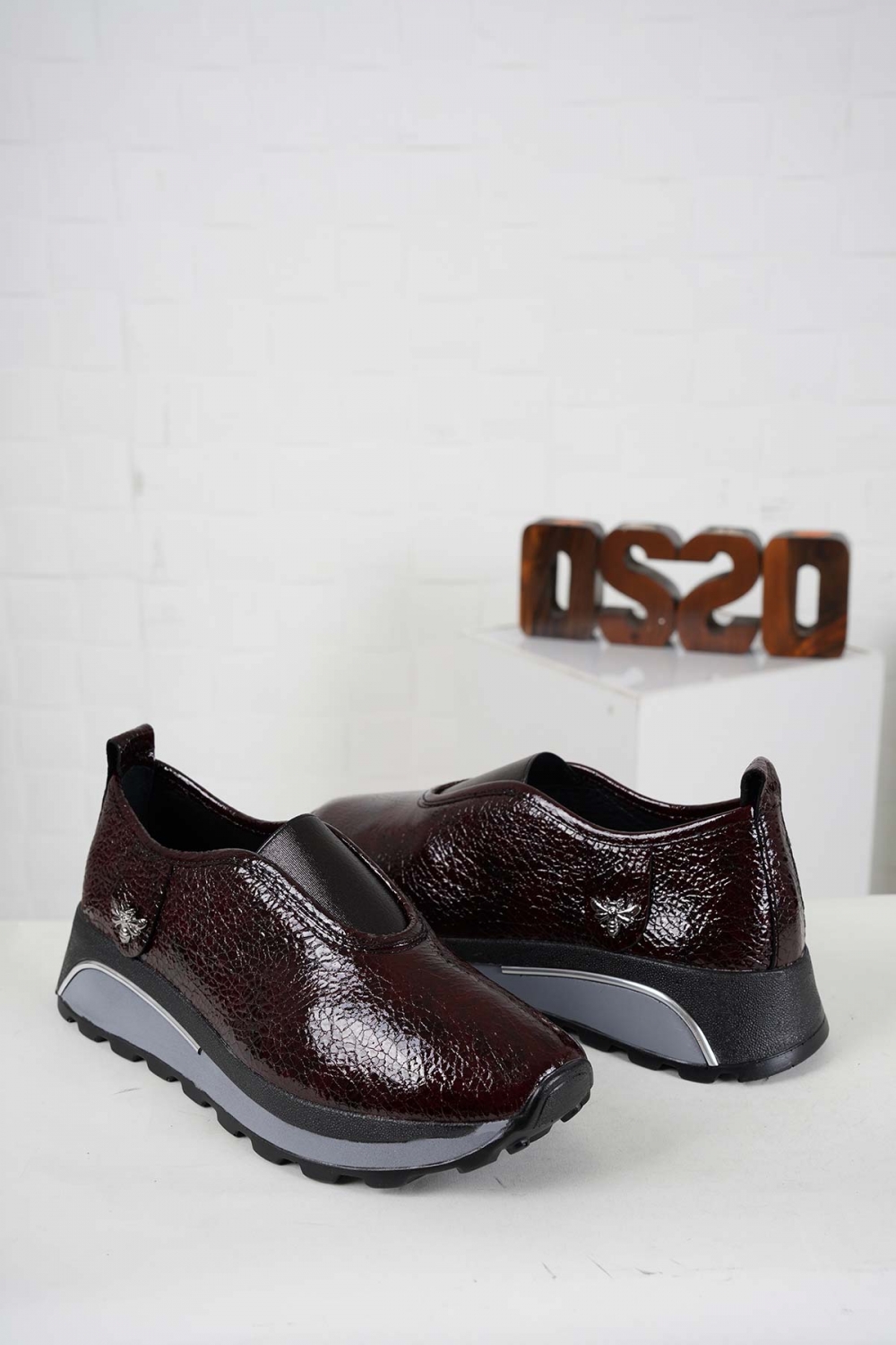 Hakiki Deri Bordo Kırık Rugan Kadın Casual Ayakkabı 242176100