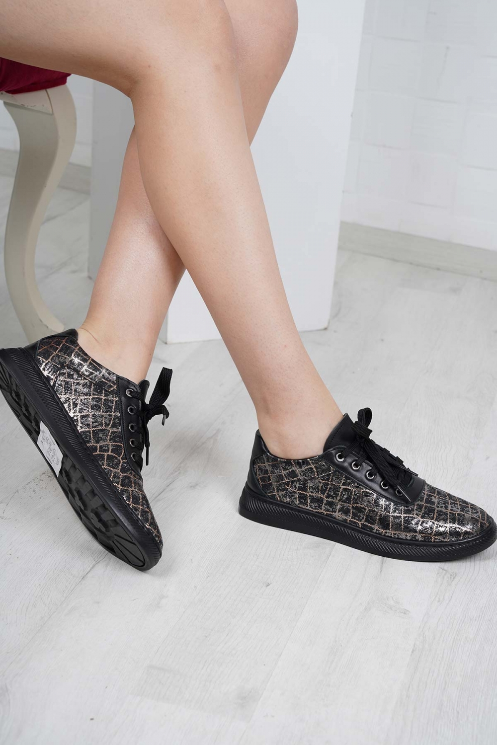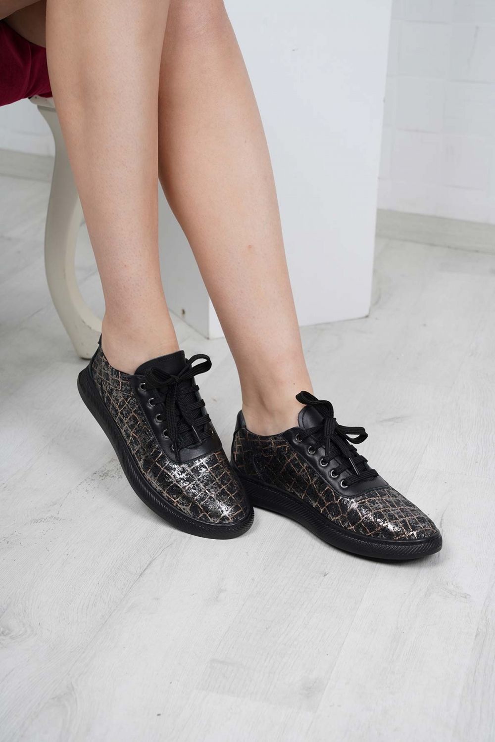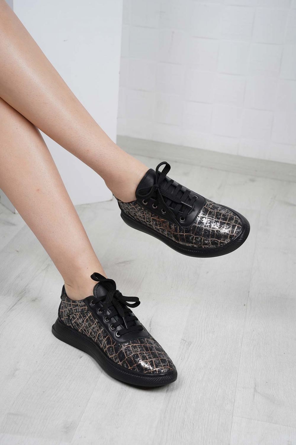Hakiki Deri Bronz Baskılı-Siyah Kadın Casual Ayakkabı 232186100