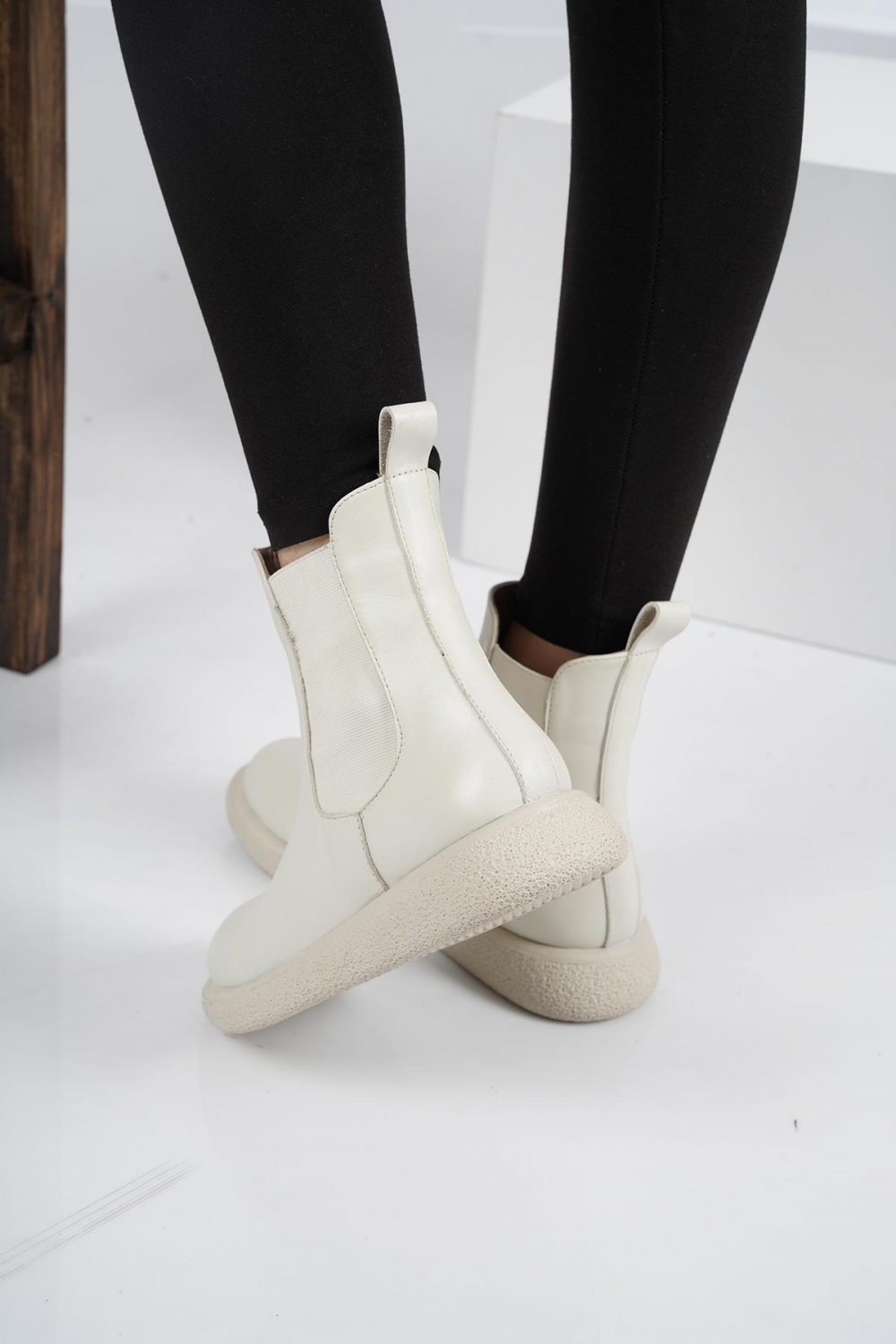 Hakiki Deri Buz Bej Kadın Spor Bot 222135202