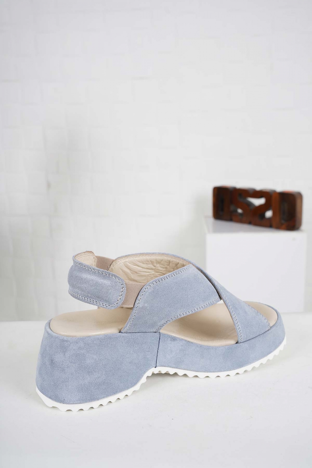 Hakiki Deri Buz Mavi Süet Kadın Dolgu Topuk Sandalet 241135502