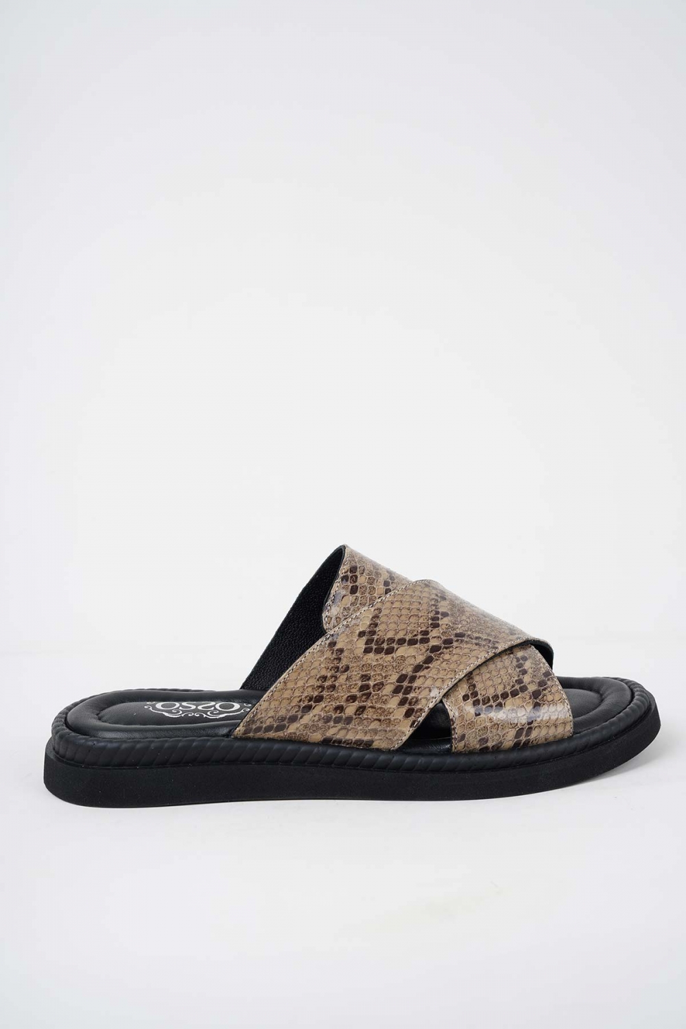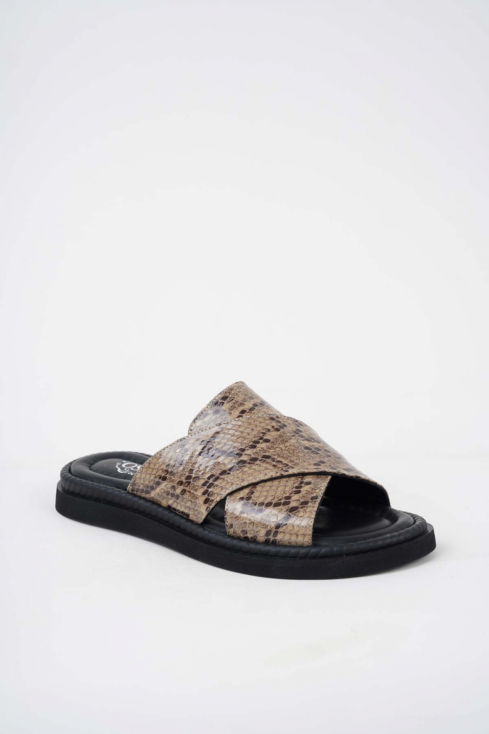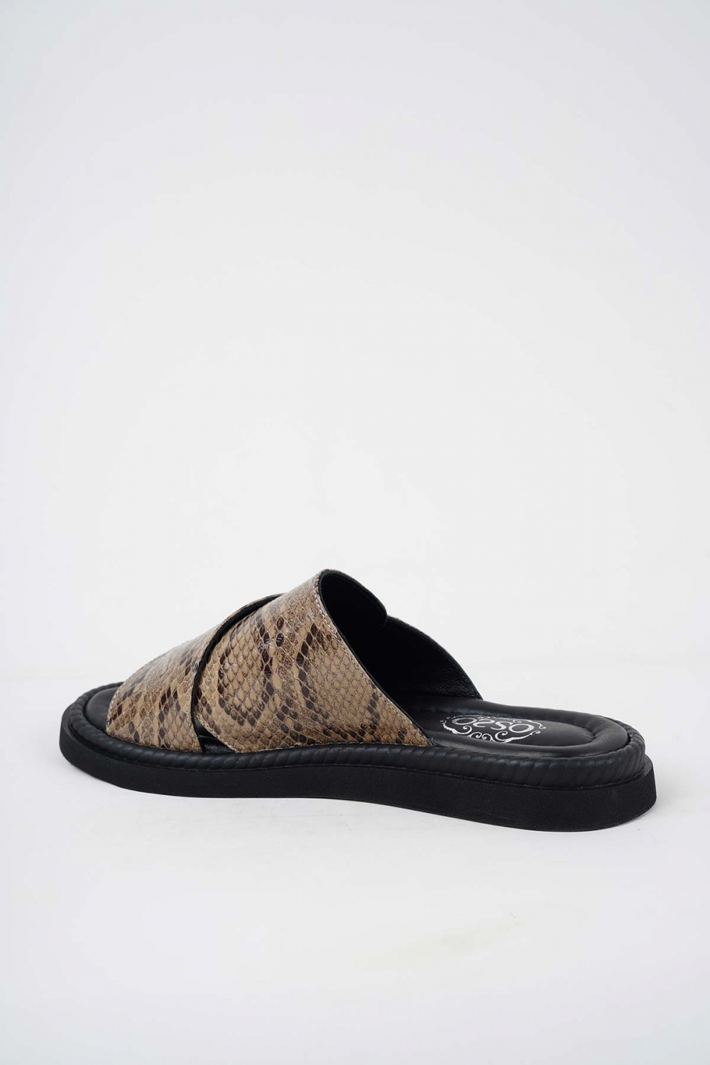 Hakiki Deri Capuccino Yılan Kadın Düz Terlik 251173602