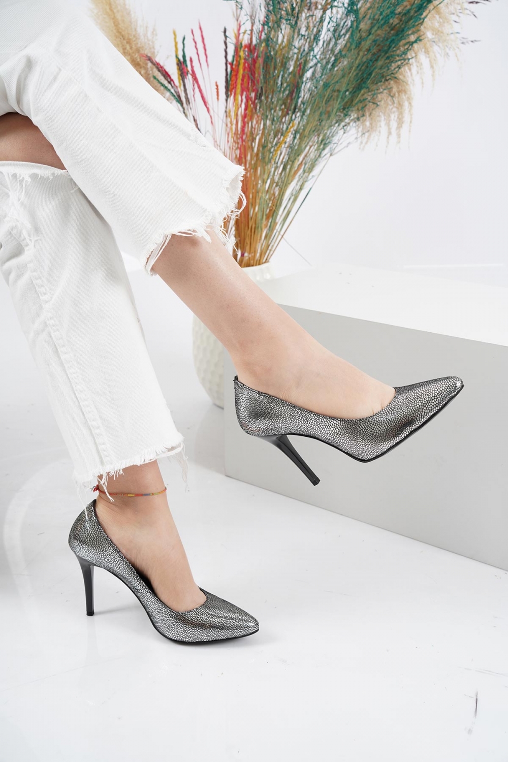 Hakiki Deri Çelik Baskı Kadın Stiletto Ayakkabı 202110104