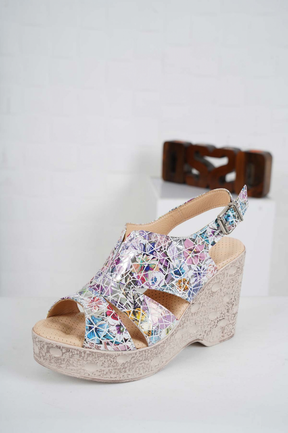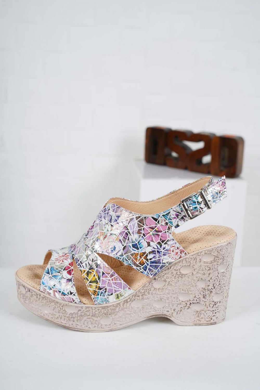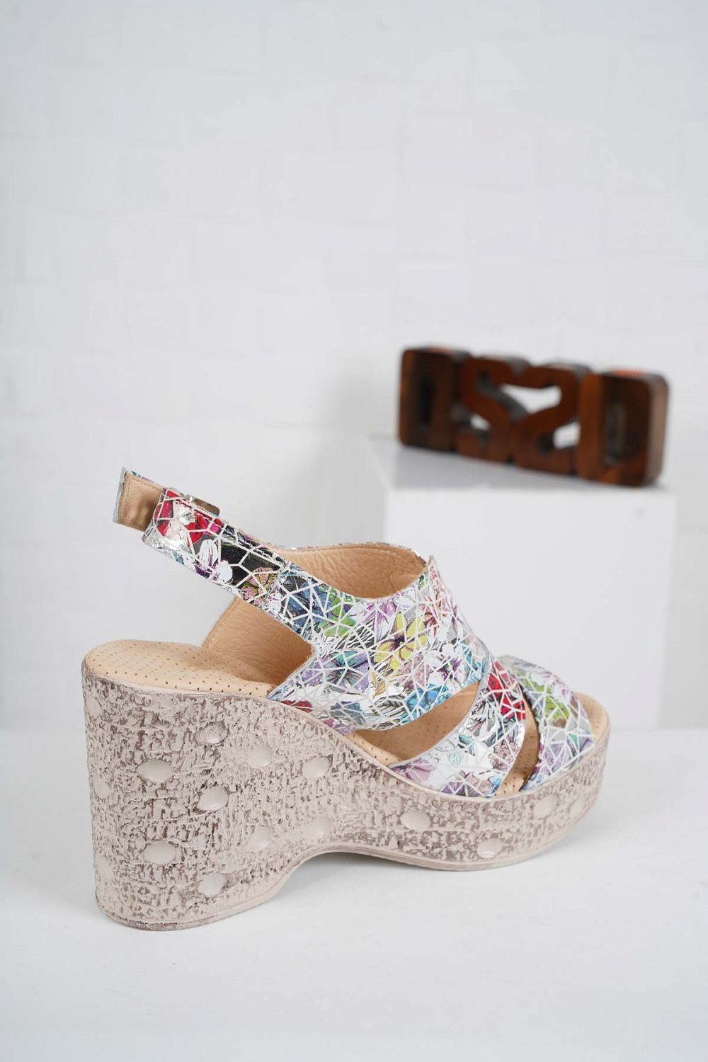Hakiki Deri Çiçekli Baskı Kadın Dolgu Topuk Sandalet 241136502