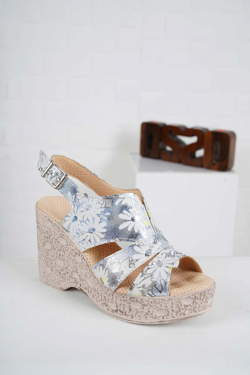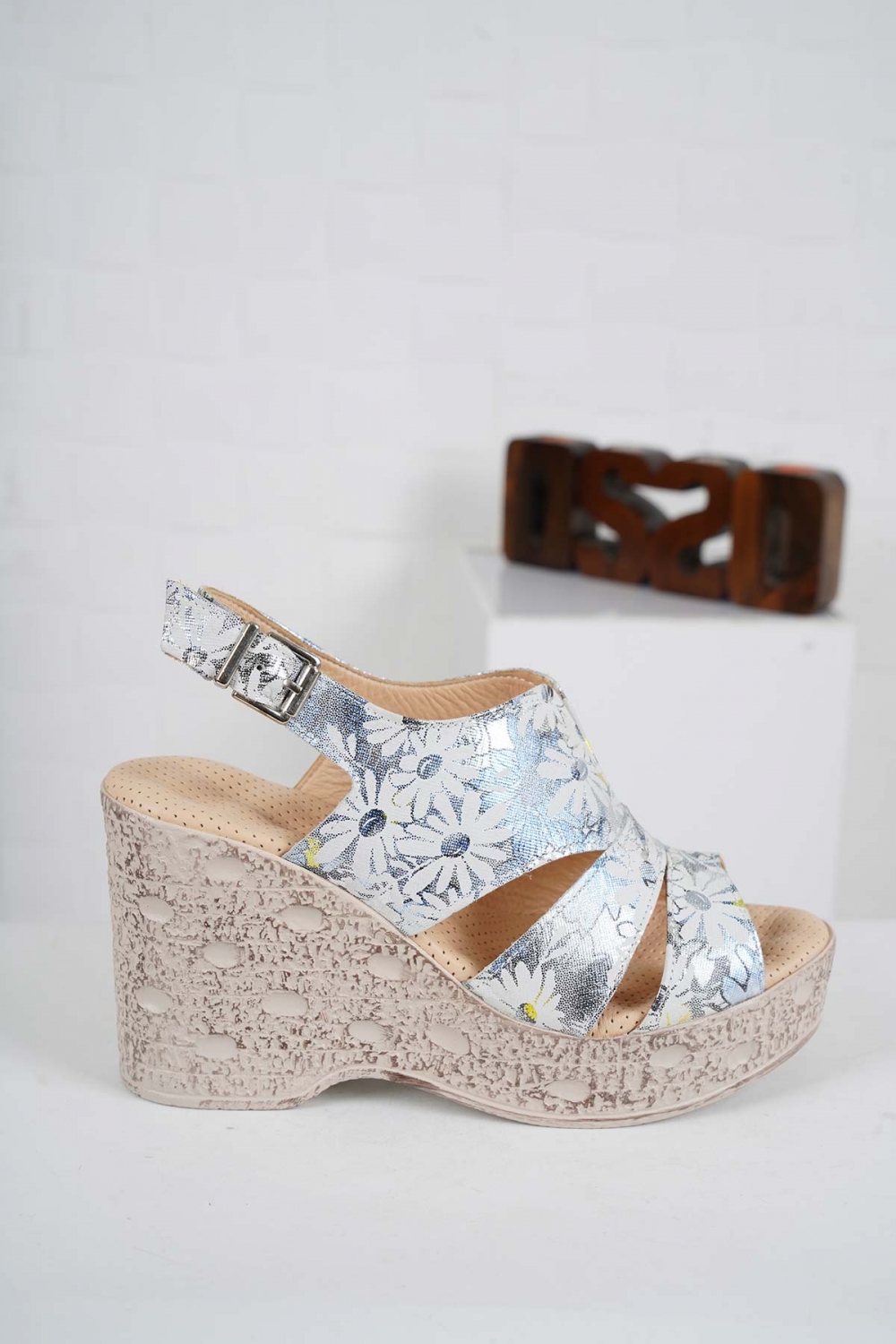 Hakiki Deri Çiçekli Baskı Kadın Dolgu Topuk Sandalet 241136502
