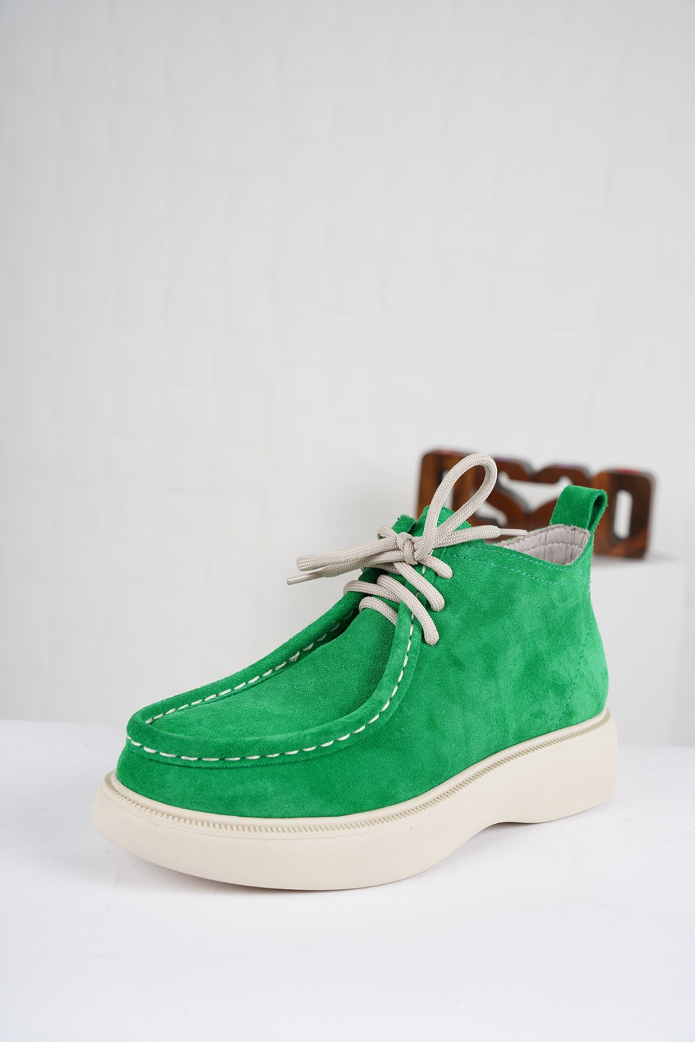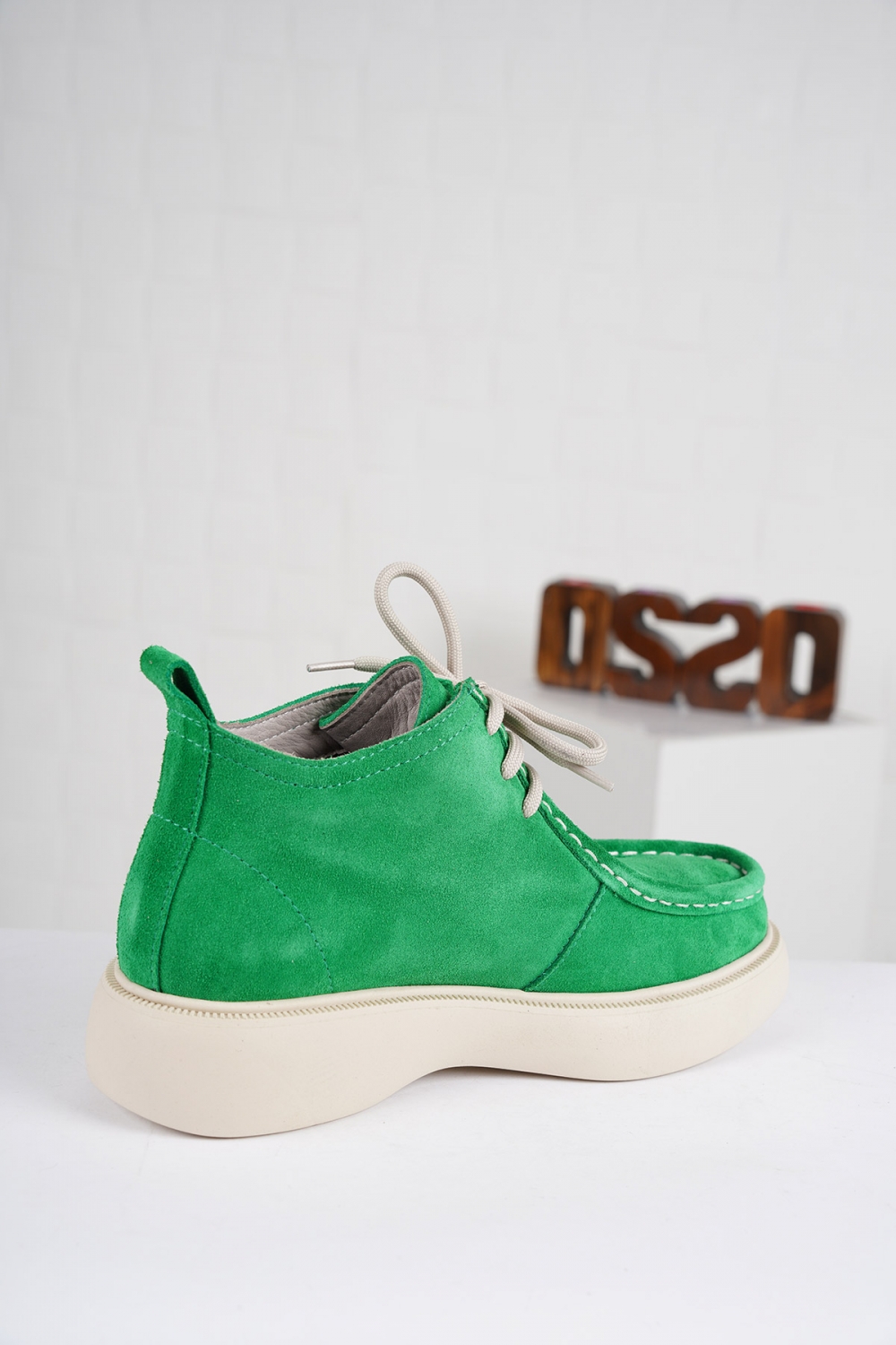 Hakiki Deri Çim Yeşil Süet Kadın Kısa Bot 222209201