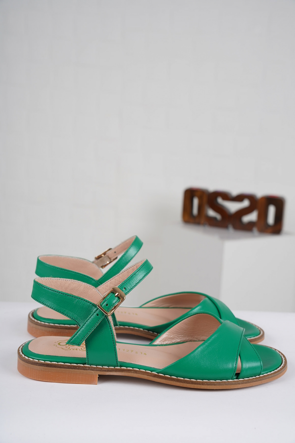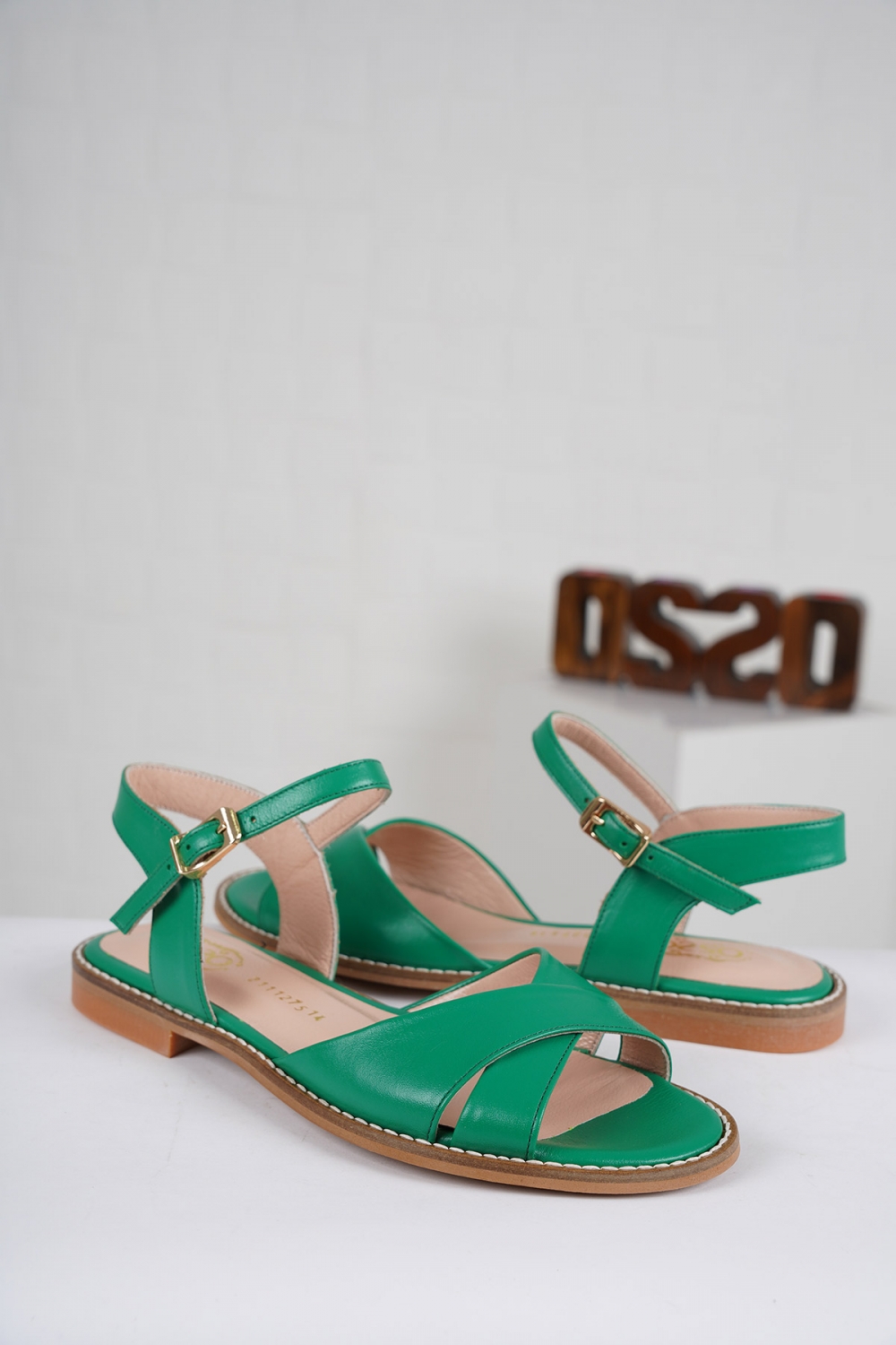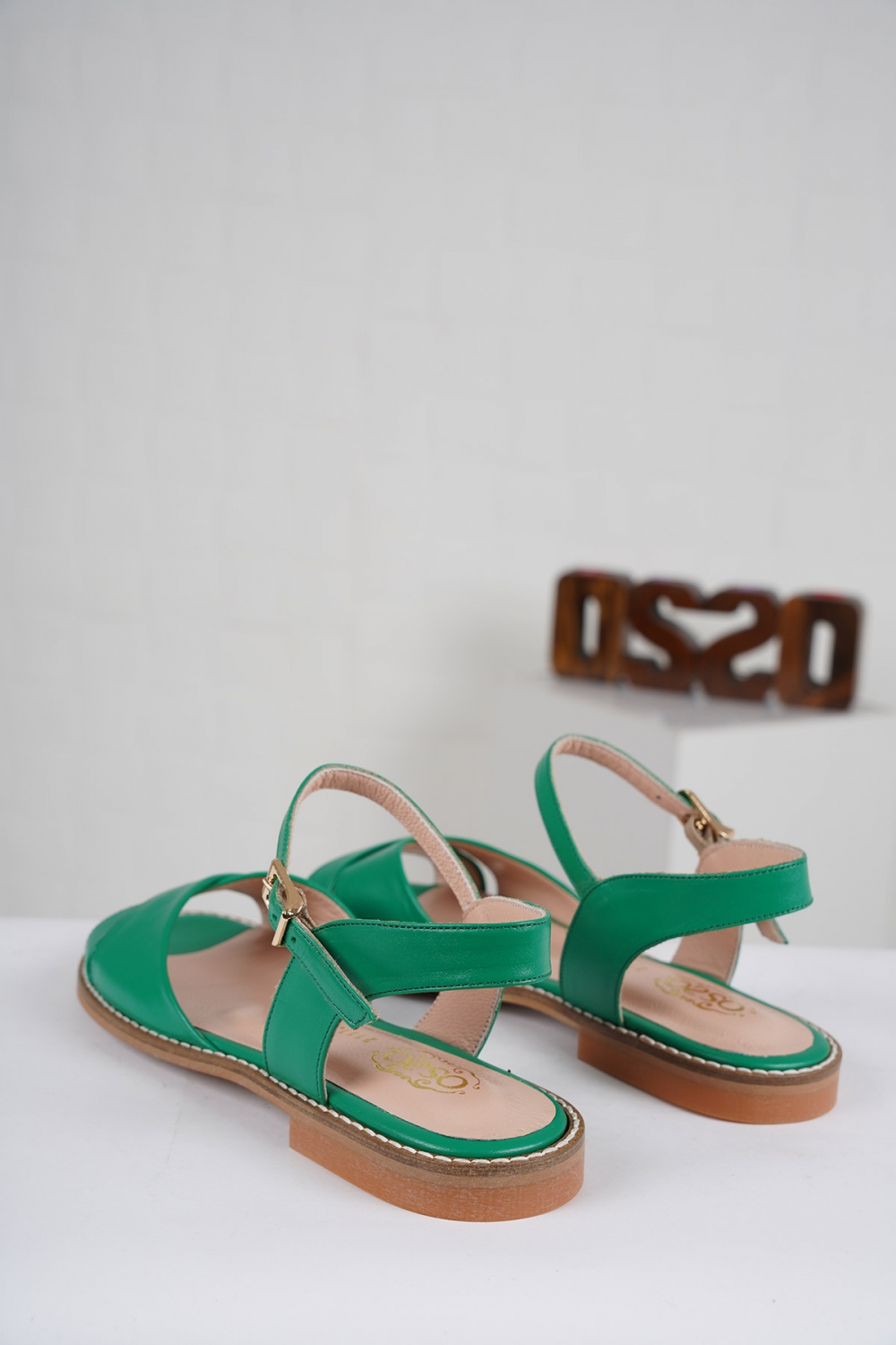 Hakiki Deri Çimen Yeşil Kadın Düz Sandalet 211127514