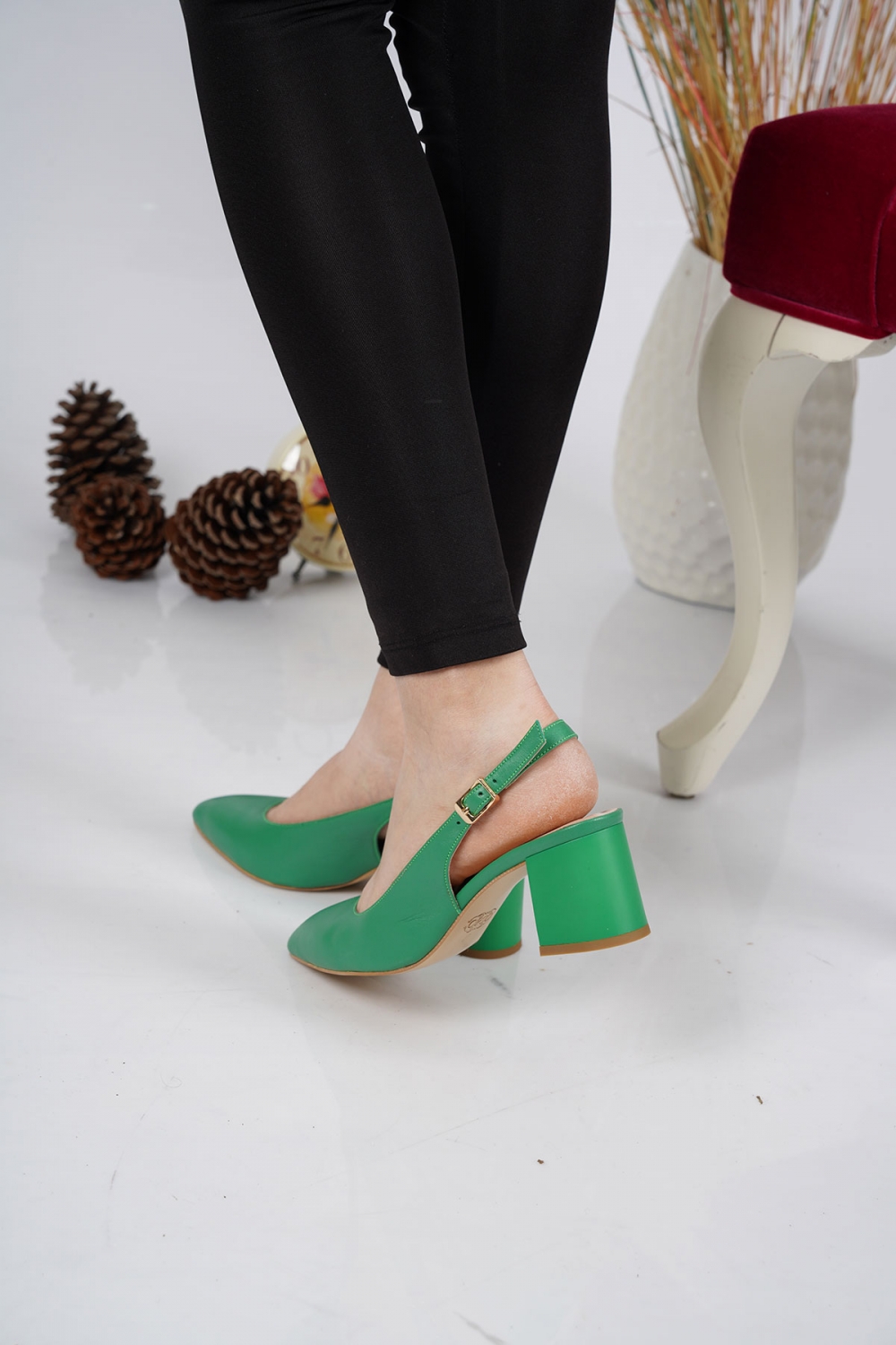Hakiki Deri Çimen Yeşil Kadın Topuklu Sandalet 221127523