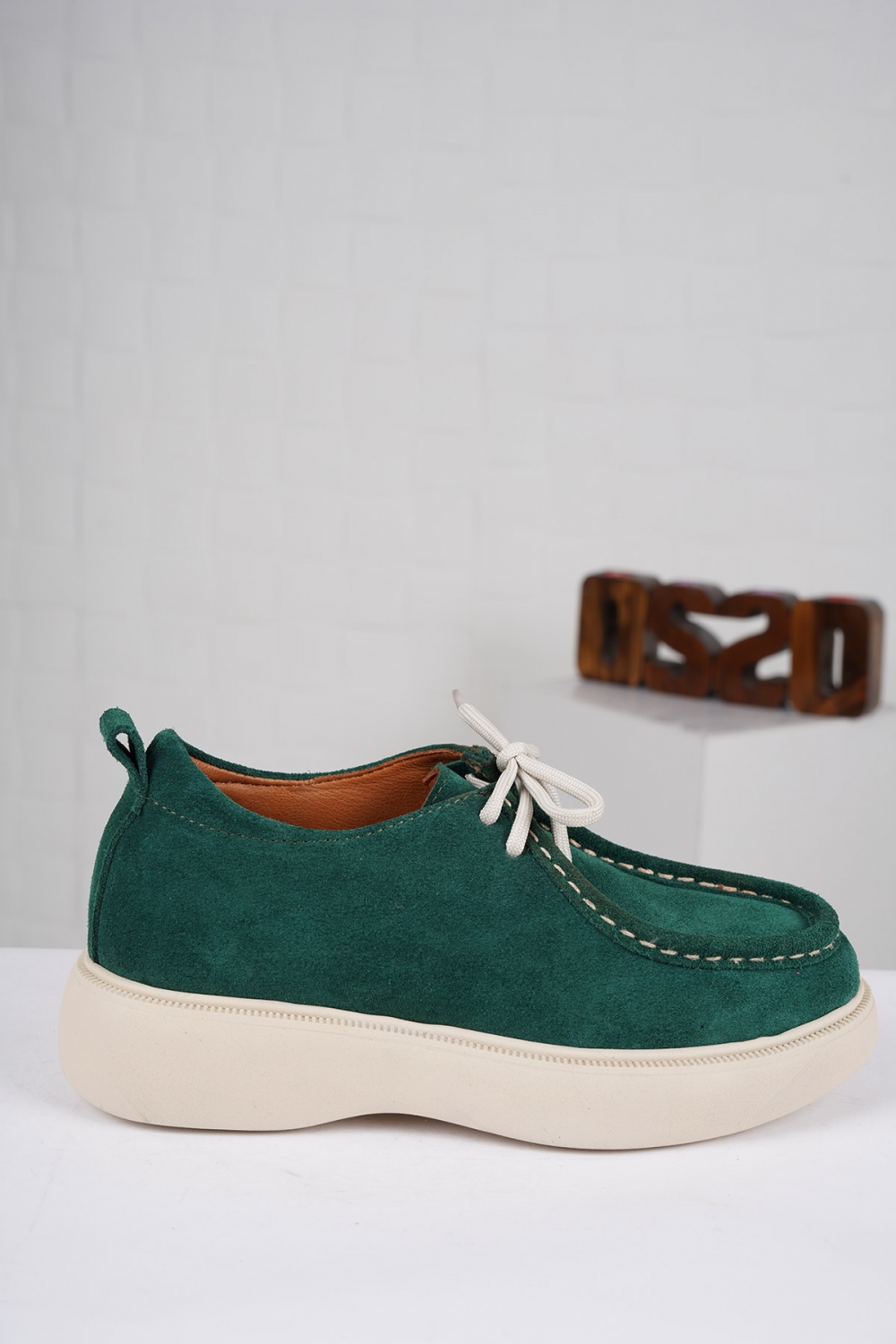 Hakiki Deri Çimen Yeşil Süet Kadın Sneaker Ayakkabı 222209102