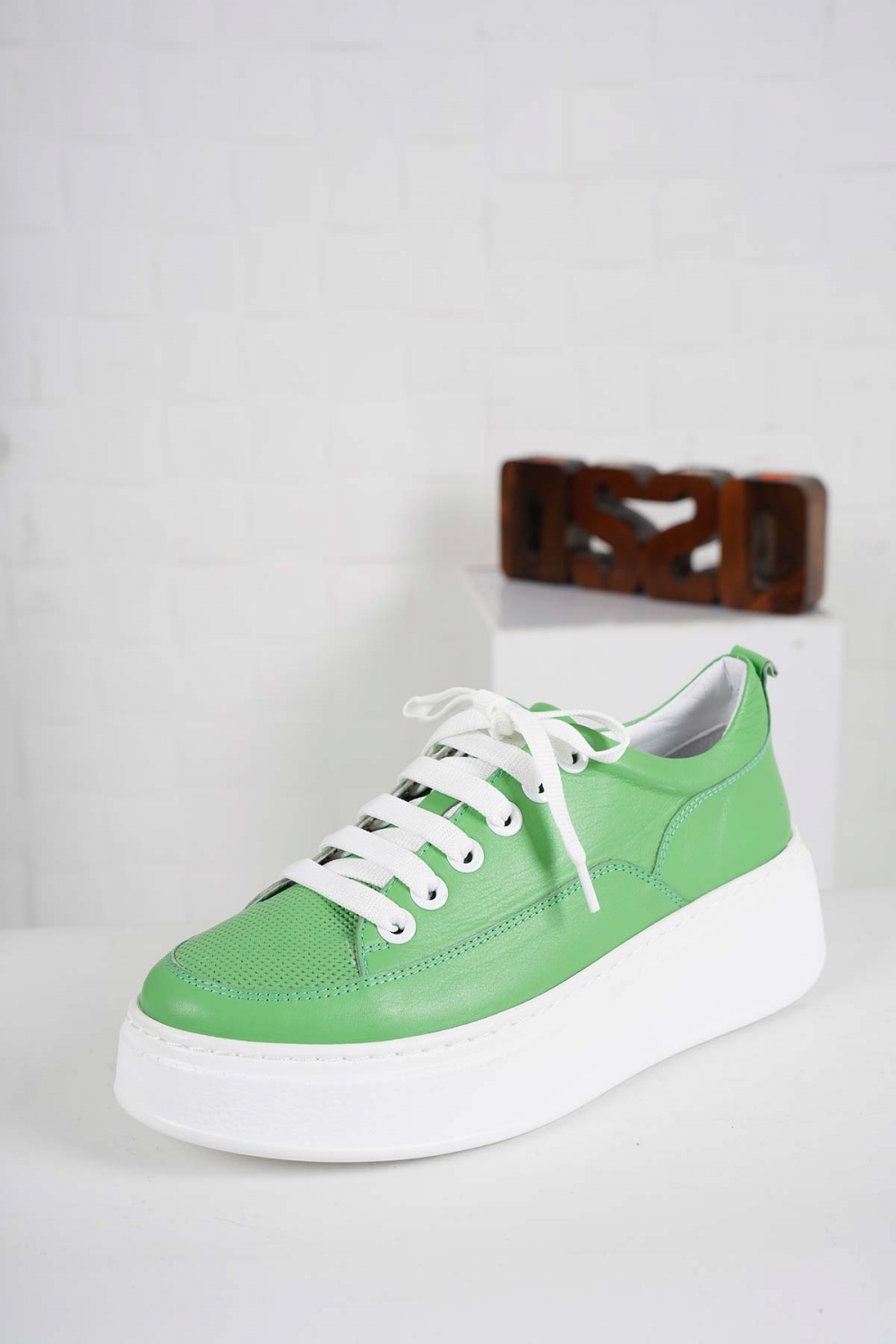 Hakiki Deri Çimen Yeşili Kadın Casual Ayakkabı 241225106
