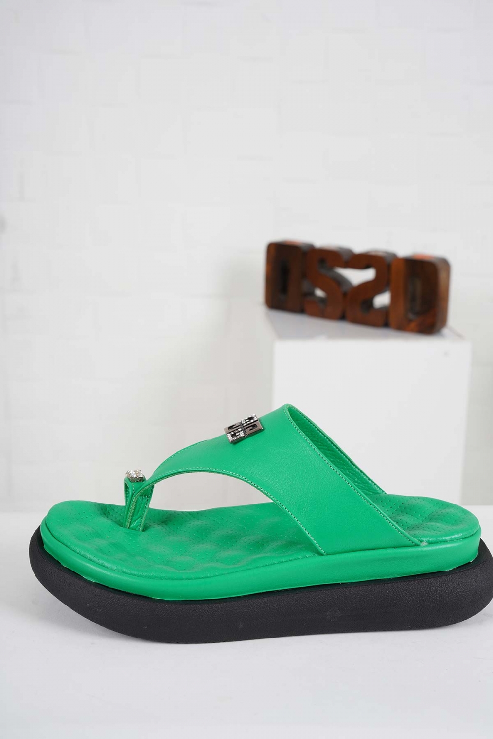 Hakiki Deri Çimen Yeşili Kadın Komfort Terlik 241229603