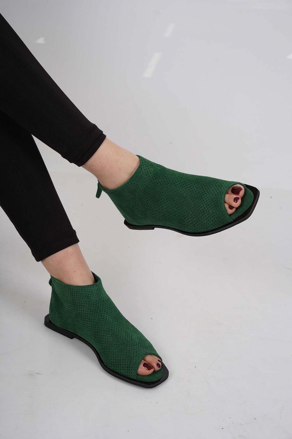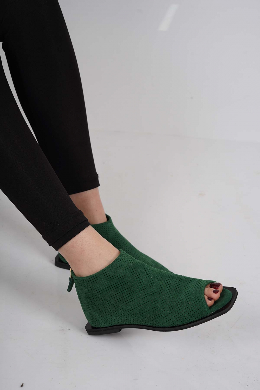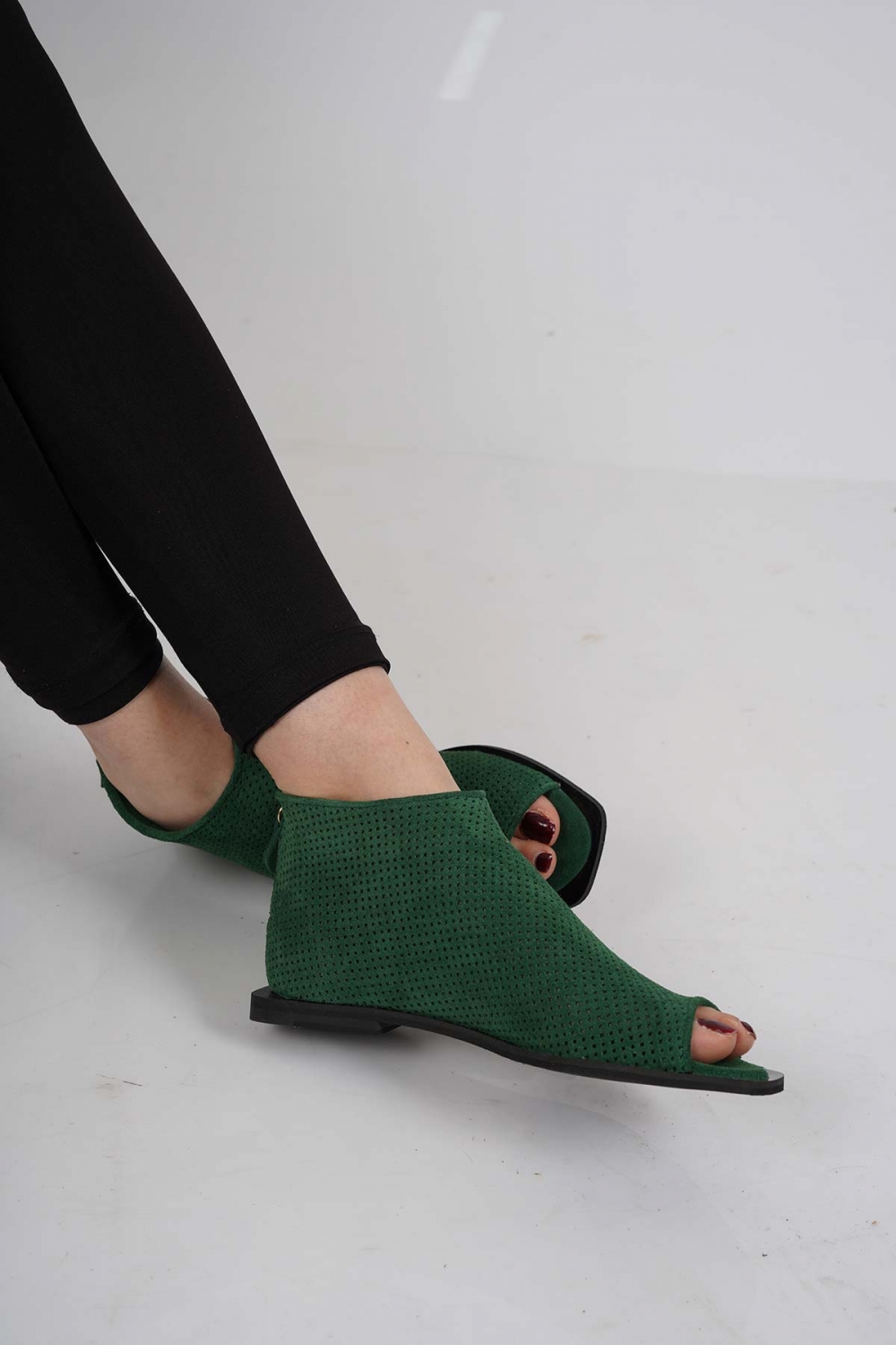 Hakiki Deri Çimen Yeşili Süet Kadın Burnu Açık Bot 221110201