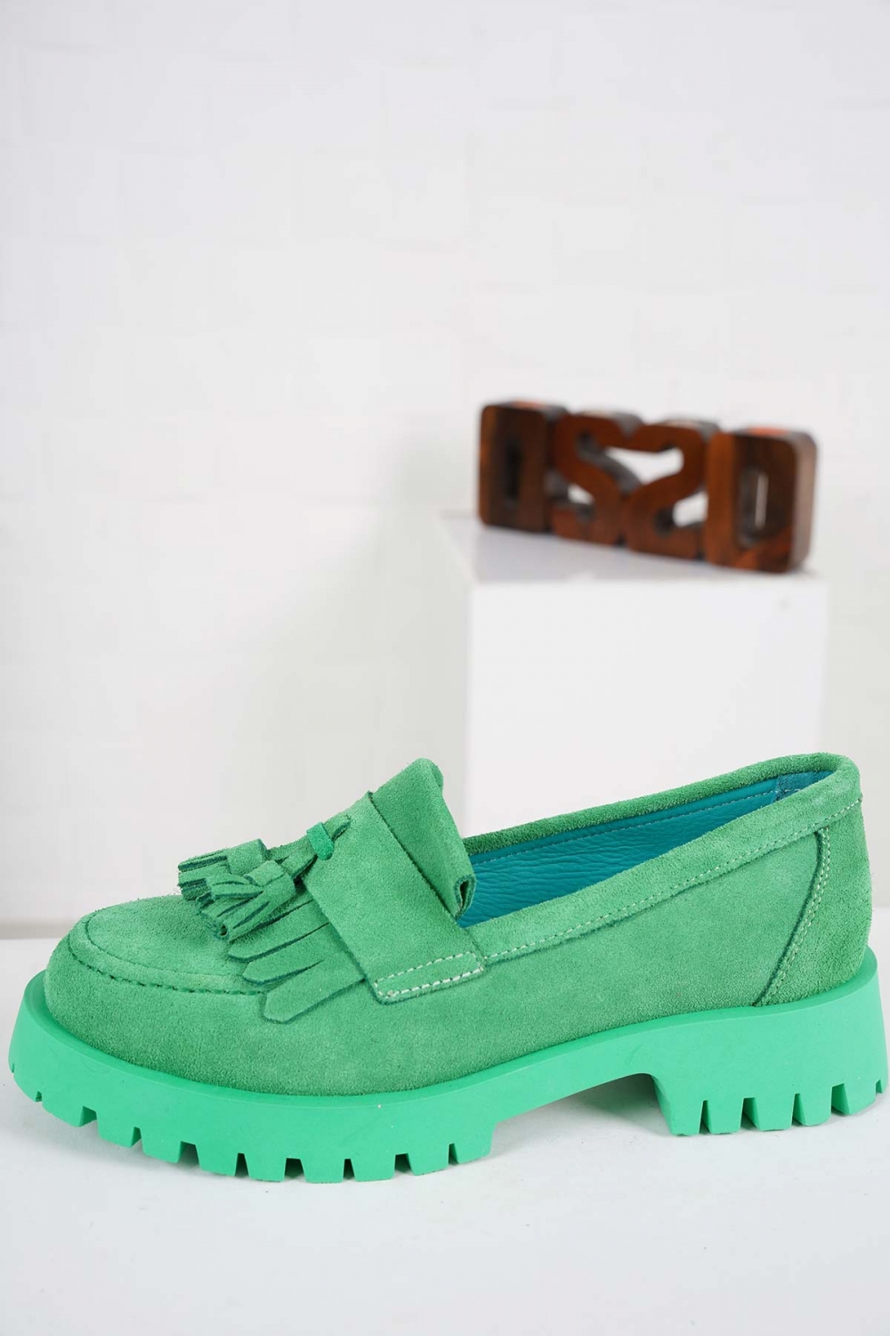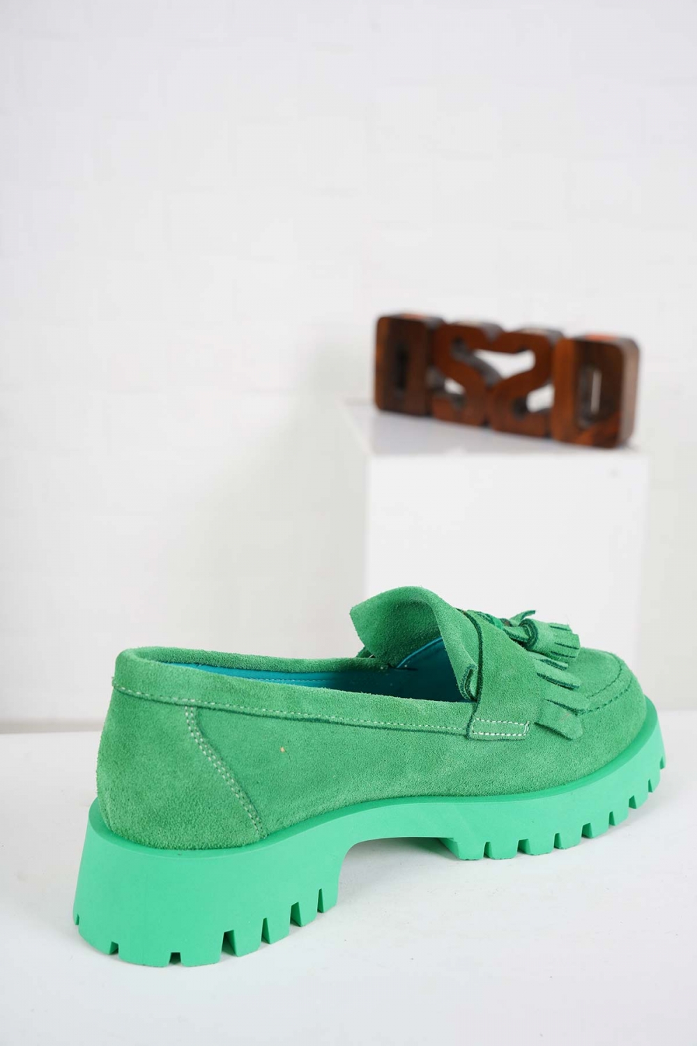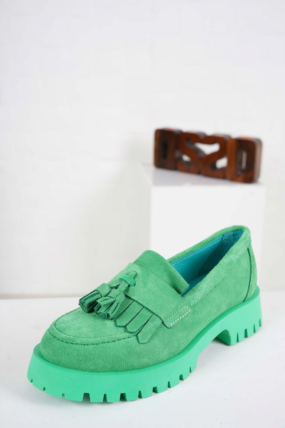 Hakiki Deri Çimen Yeşili Süet Kadın Casual Ayakkabı 241108107