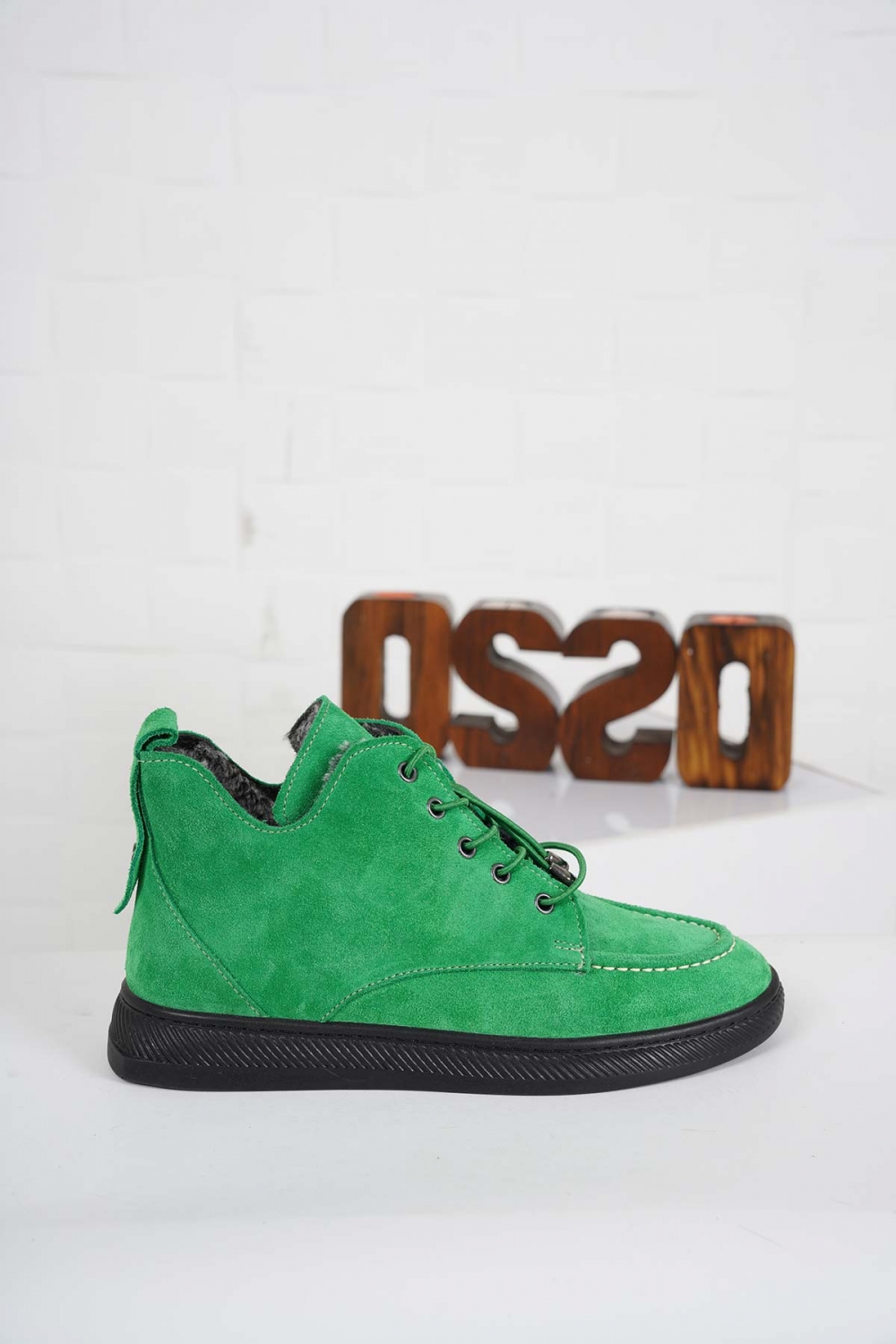 Hakiki Deri Çimen Yeşili Süet Kadın Casual Bot 232186202