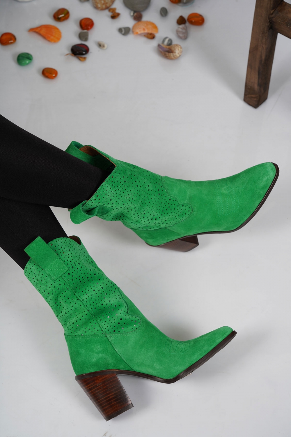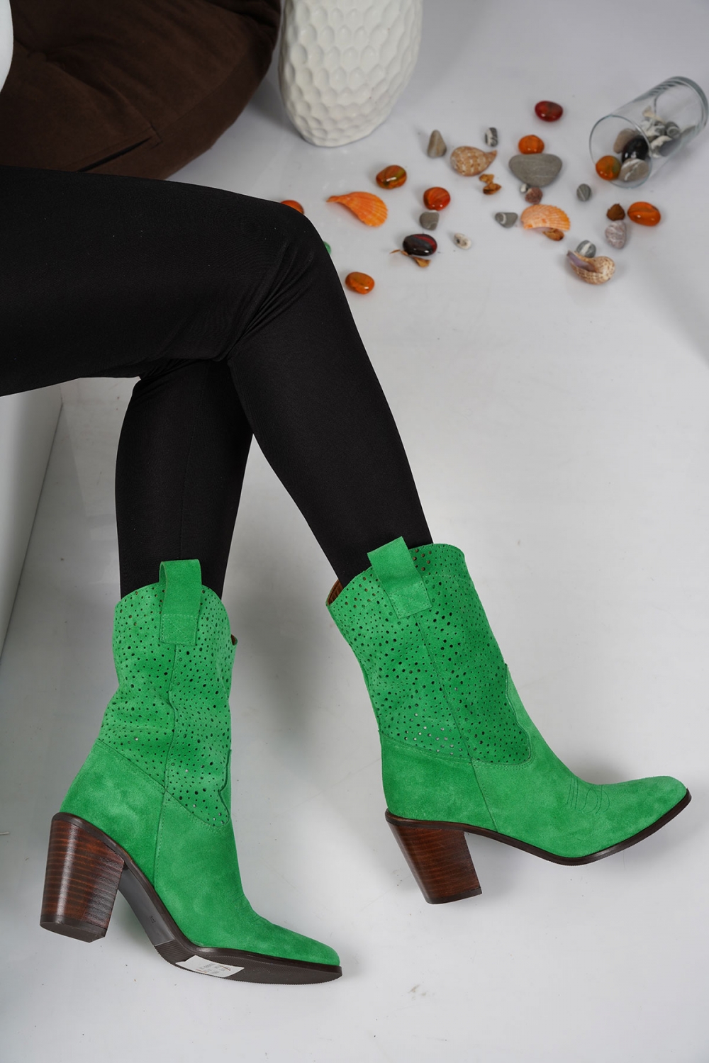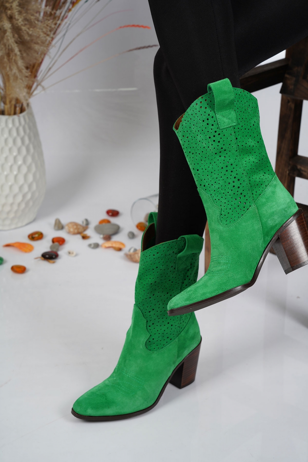 Hakiki Deri Çimen Yeşili Süet Kadın Kovboy Bot 231110203